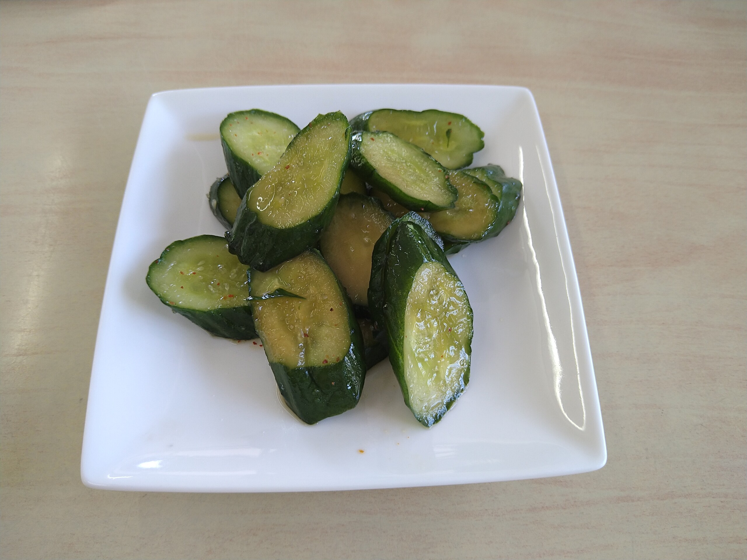 注文したのは甲州名物のほうとうです。煮込んだりと調理に少し時間がかかるらしく、その間に店のおばちゃんが「これを食べて待ってて」っとキュウリの浅漬けを出してくれました。良い感じに漬かっててメチャ美味しかったです。