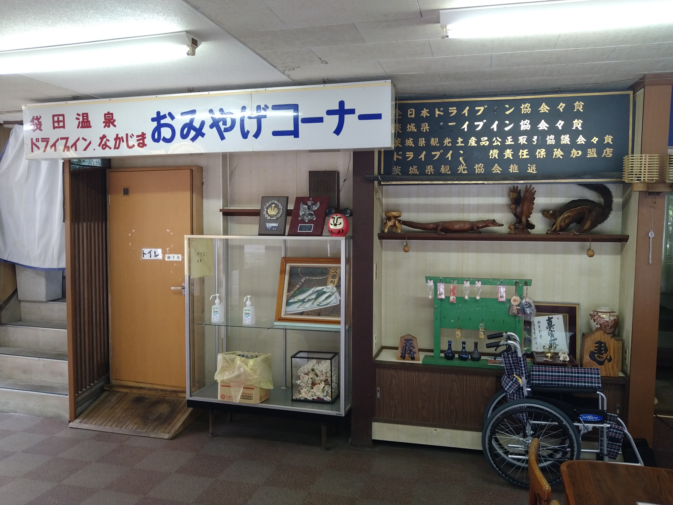 店内にはおみやげコーナーがありましたが現在は販売してない様です。黒い看板気になりませんか?「日本ドライブイン協会」と書かれています!全盛期は星の数ほどドライブインがあったそうですから、ドライブインの協会があってもおかしくありませんね。気になったのでネットで検索してみると昭和54年に設立したそうですが、ドライブインと言う限られた枠組みの中では活動限界があり、平成24年に日本ドライブイン協会は「日本観光施設協会」に移行し、新たな活動を開始する中、日本ドライブイン協会は消滅したそうです。