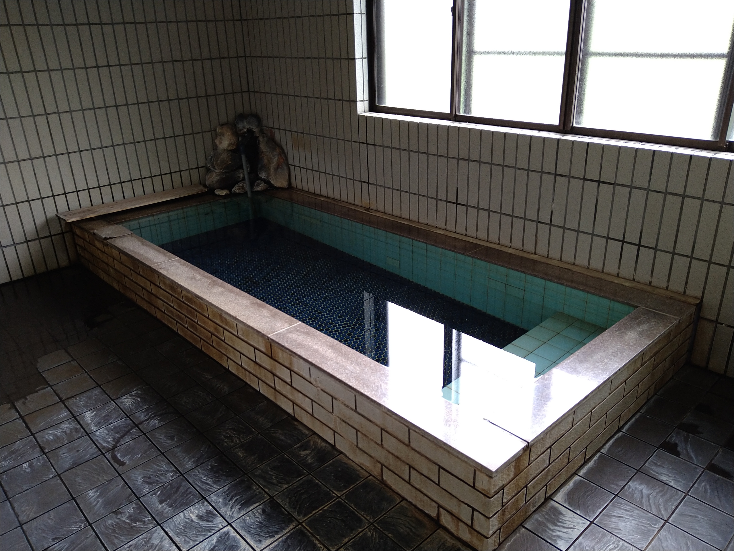 温泉はこぢんまりとした、家庭の風呂よりちょっと大きい感じです。