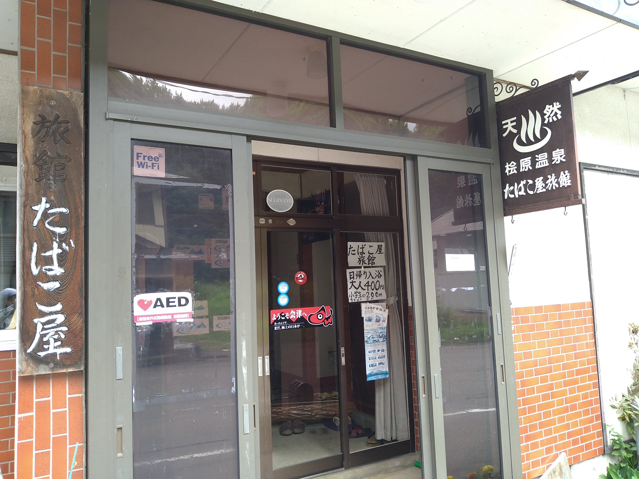 朝8時から入浴可能な桧原湖の湖畔にある桧原温泉・たばこ屋旅館の日帰り入浴に行きました。料金は大人400円です。
