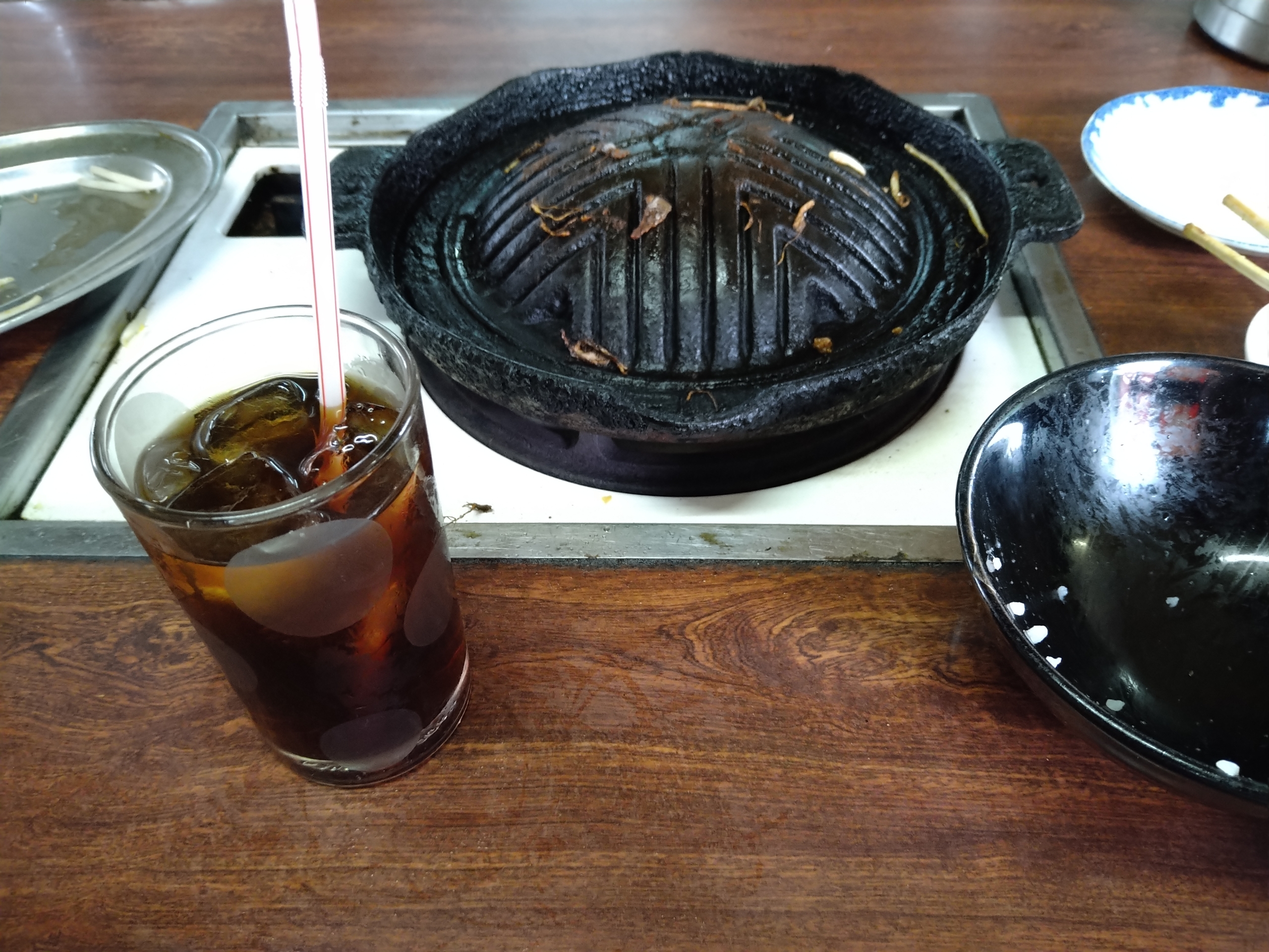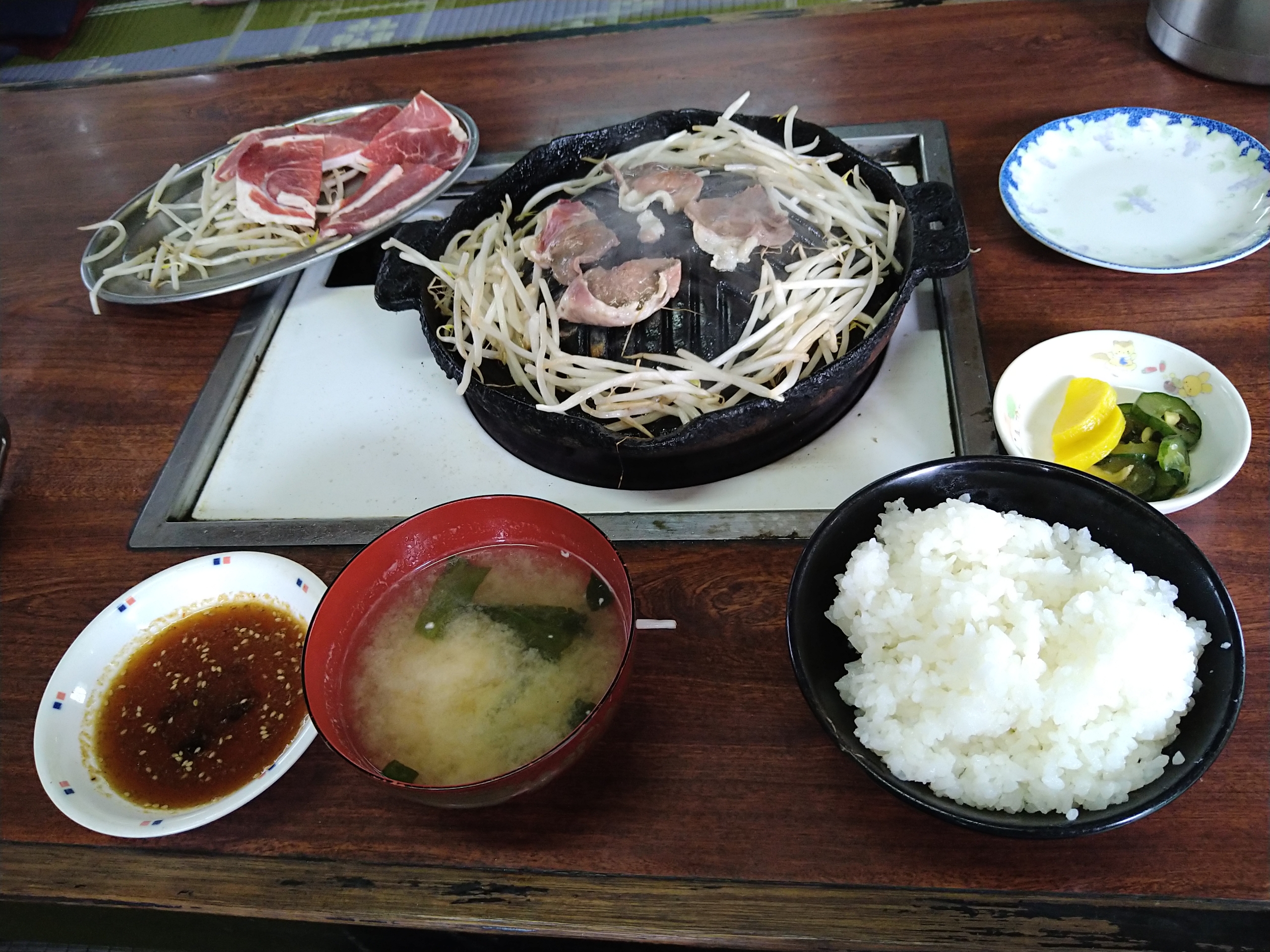 今回食べたのはジンギスカン定食(1000円)です。ここのジンギスカン定食はコンロにジンギスカン専用の鉄板をセットして自分で焼いて食べるスタイルです。ジンギスカン定食は羊肉(マトン)にモヤシとシンプルでご飯と味噌汁・漬物が付いています。食べた感想はマトン独特の癖があり、肉はやや歯ごたえがあって硬めですが、噛めば旨みががあって特製タレに付けて食べるとメチャ美味しくご飯が進みました。今どきジンギスカン定食が1000円で食べれるのは安くて貴重ですね。ジンギスカン好きにはたまりませんね。