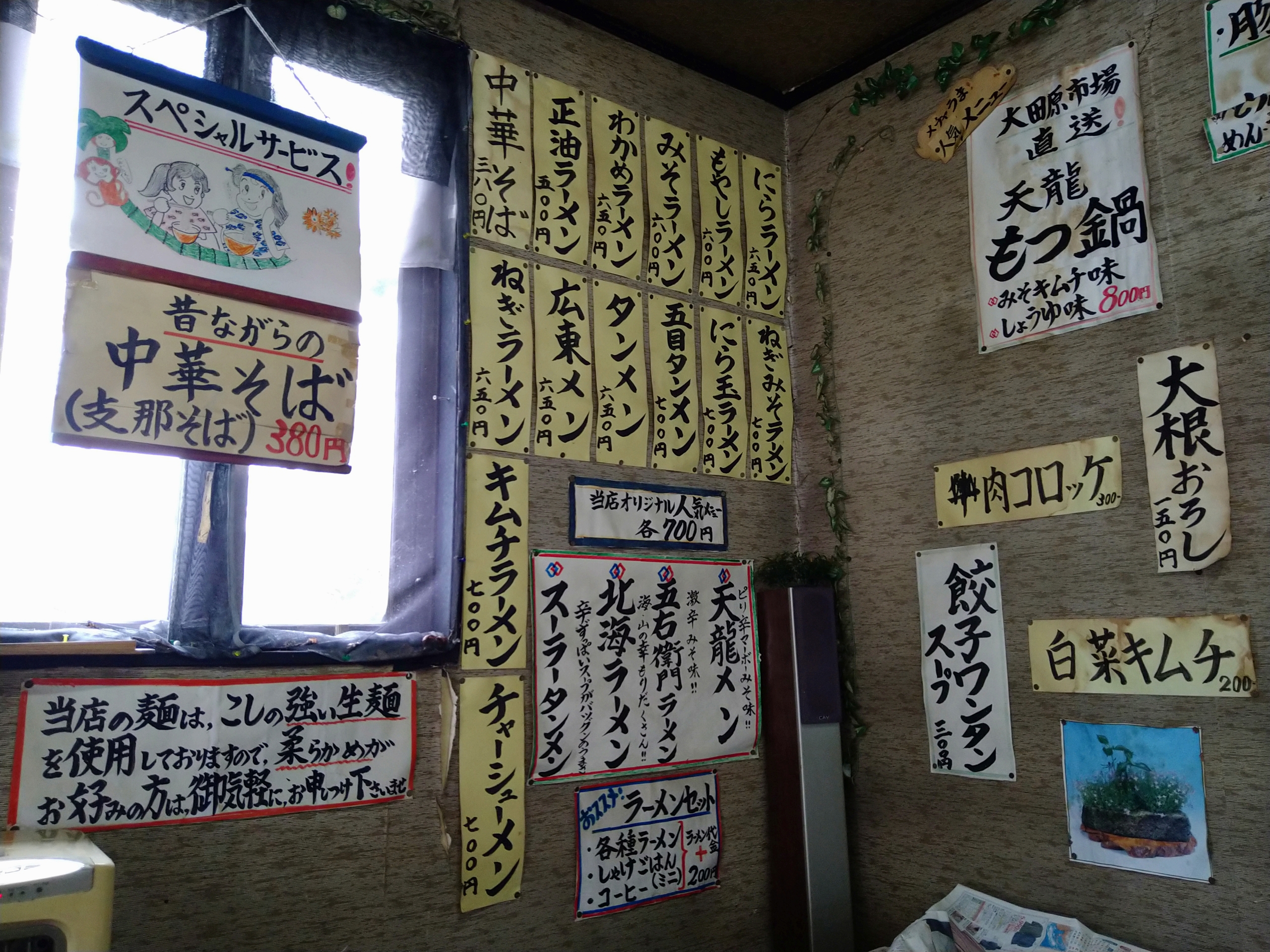 麺類はラーメンだけですが、種類が豊富で中華そばは380円とメチャ安いです。