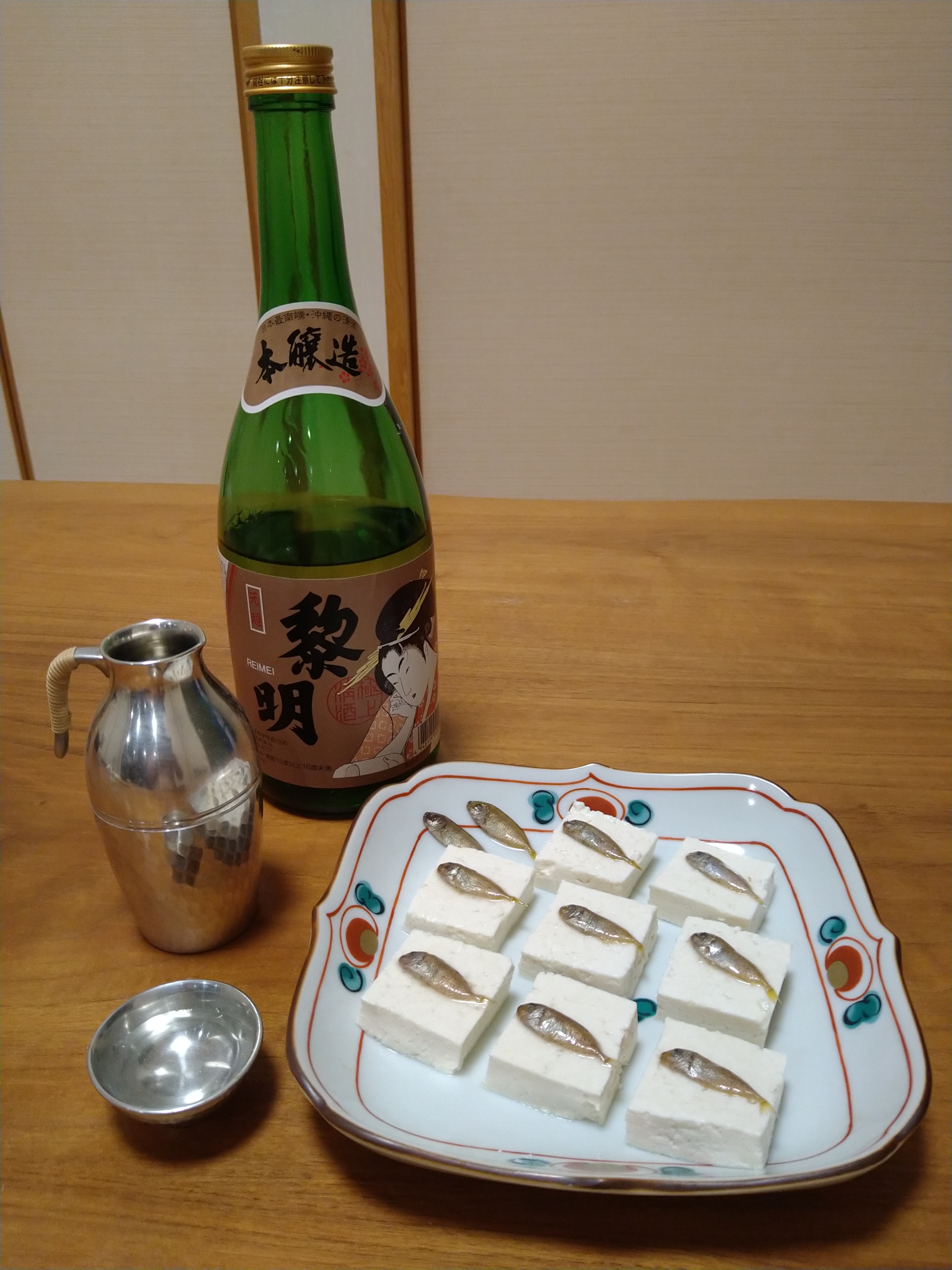 沖縄の日本酒・黎明の本醸造と肴は沖縄料理のスクガラス豆腐