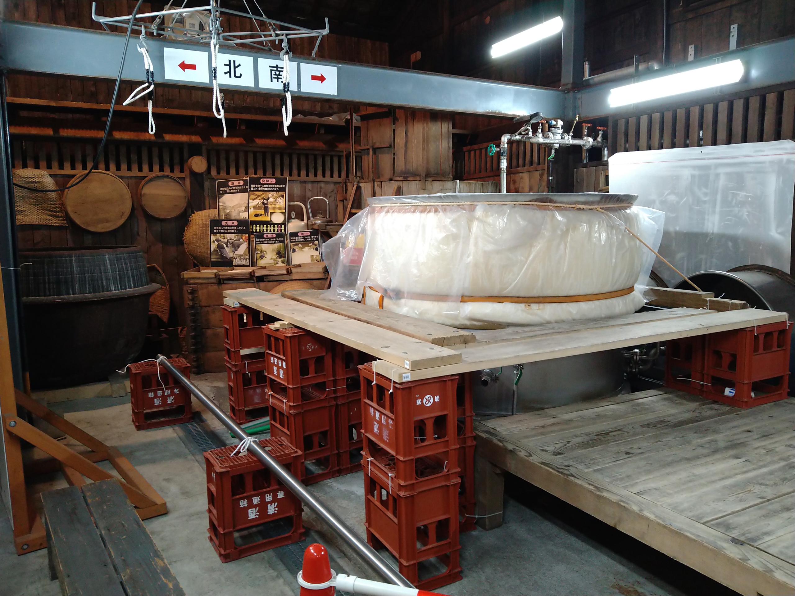 国稀酒造は売店の奥が酒蔵で軽く見学もする事ができます。甑の位置が高いですね。P函の足場じゃ不安定そうで蒸米を掘るのが大変そうだ。