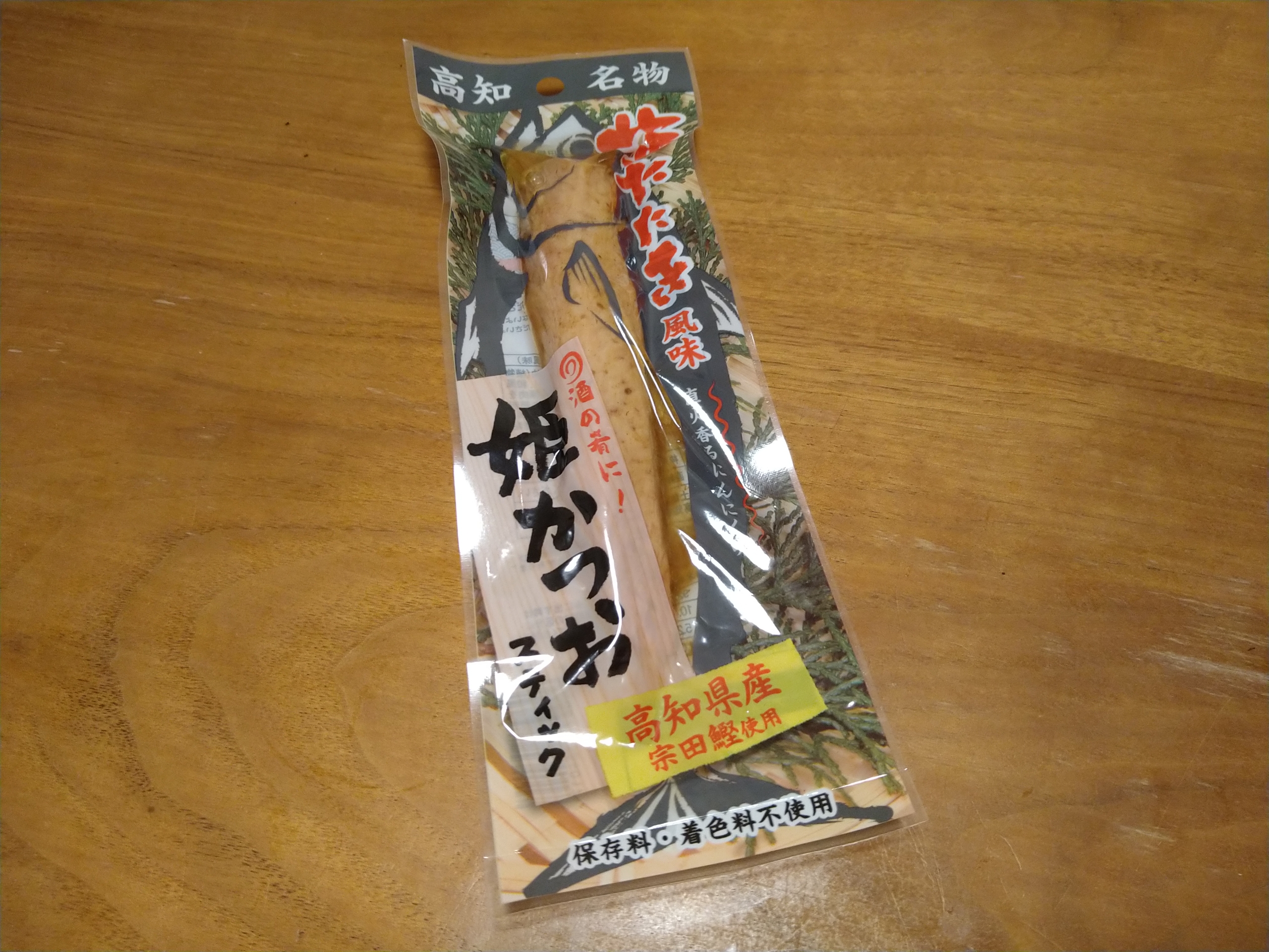 今日の酒の肴は姫かつおスティック・塩たたき風味です。原料は高知県産の宗田鰹を使っていて値段は248円で土佐清水市の土佐清水食品と言う会社が製造しています。