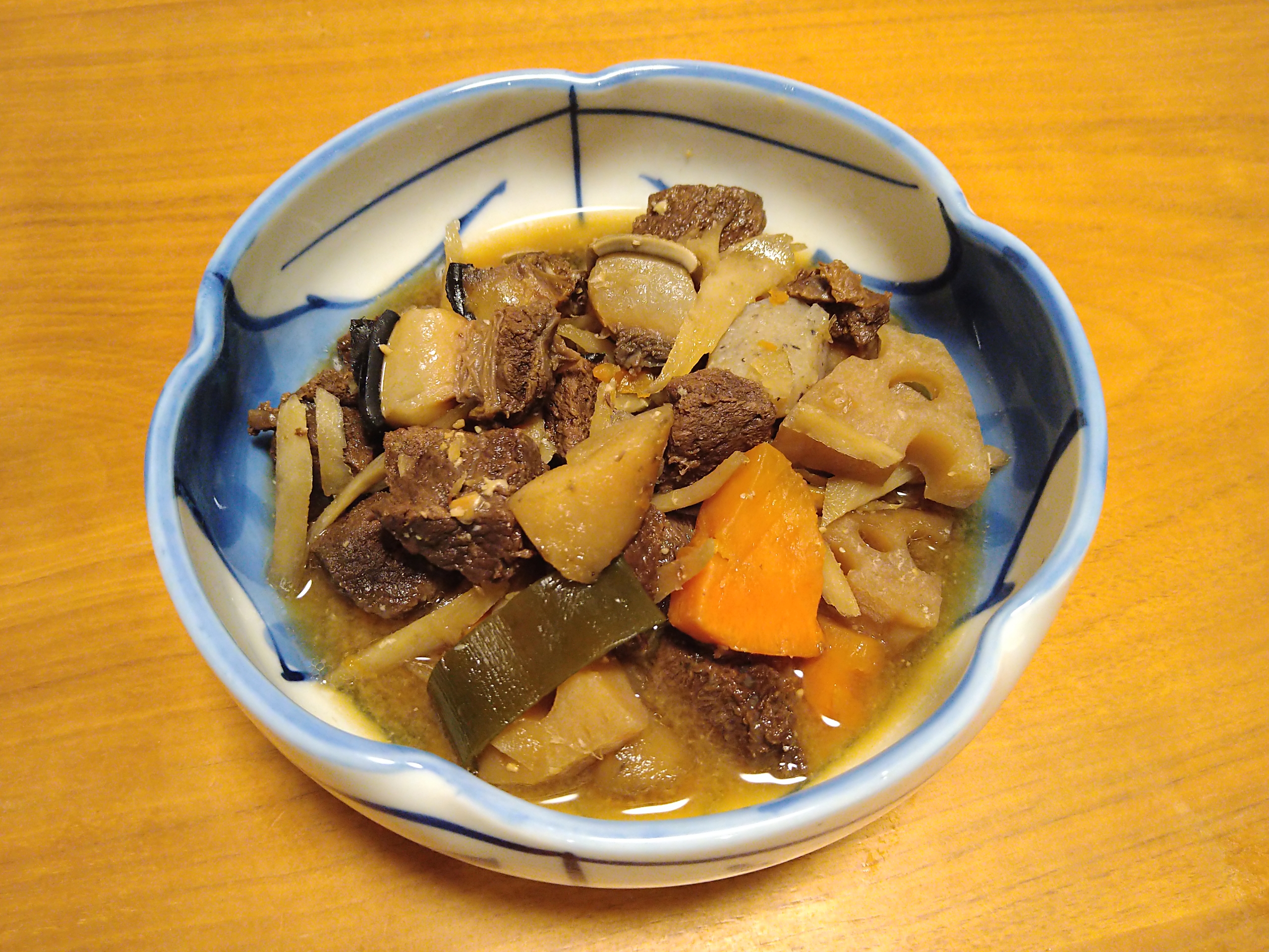 作ったのはイルカの煮物です。イルカの肉は値段は安いが肉の下処理にかなりの時間を費やし手間がかかるのが難点です。今回も解凍して流水で血を洗い流し、4回ほど下茹でをして灰汁を取り、それから調理して煮物にしました。食べた感想は肉はパサパサで下処理をしていても少し獣臭が残っていて、私は気にならず普通に食べれてメチャ美味しいとまでは言えませんが、普通に食べて酒の肴にしました。家族に勧めると調理してる時の臭いから嫌と言われ誰も口にしませんでした。(泣)でもイルカを食べる食文化は現在も和歌山や静岡・岩手などに残っていて昔から続く伝統的な食文化なのです。