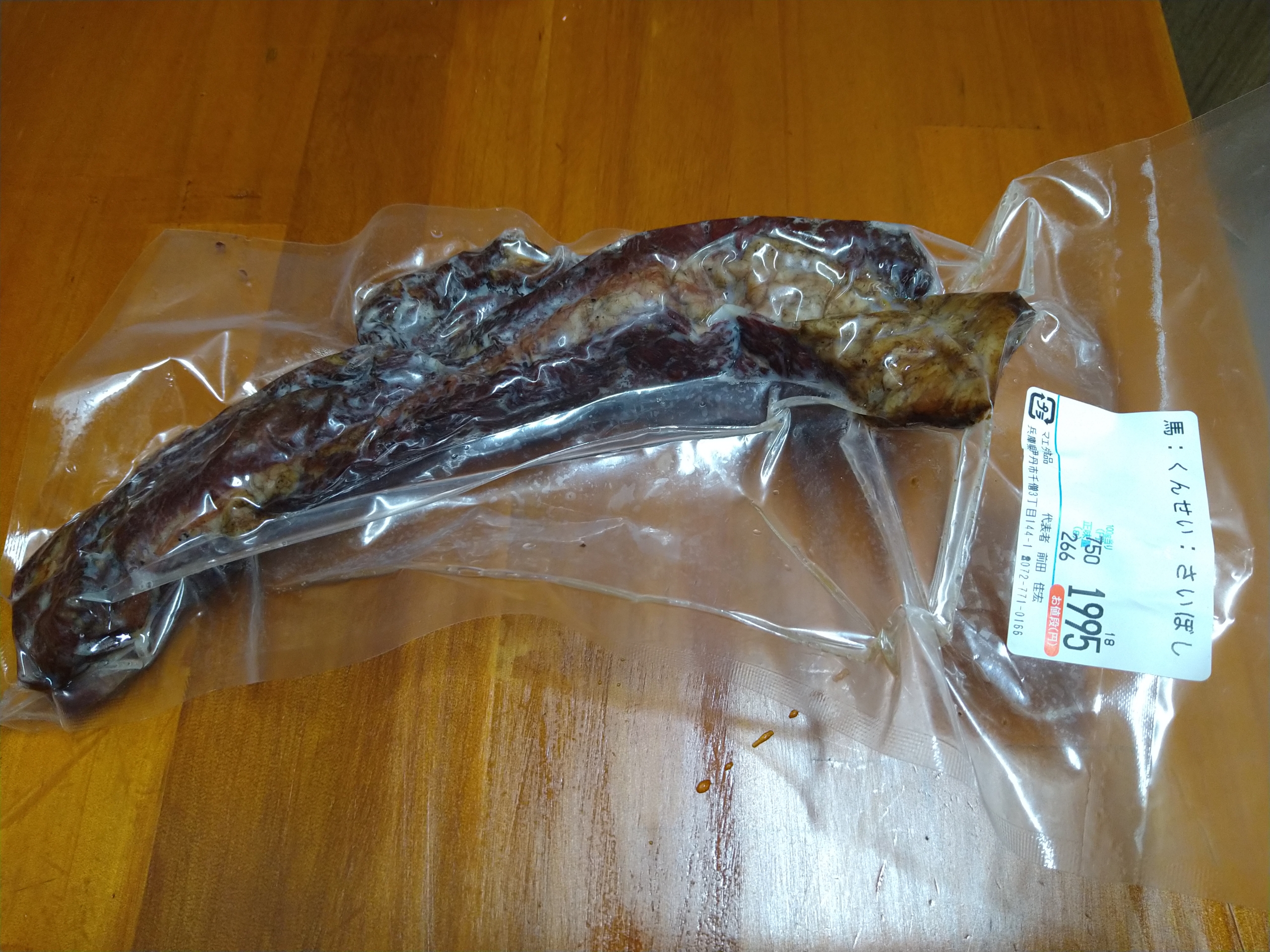 今日の酒の肴は兵庫県伊丹市の卸の肉屋さんマエダ食品で購入した、大阪府の郷土食であるさいぼしです。