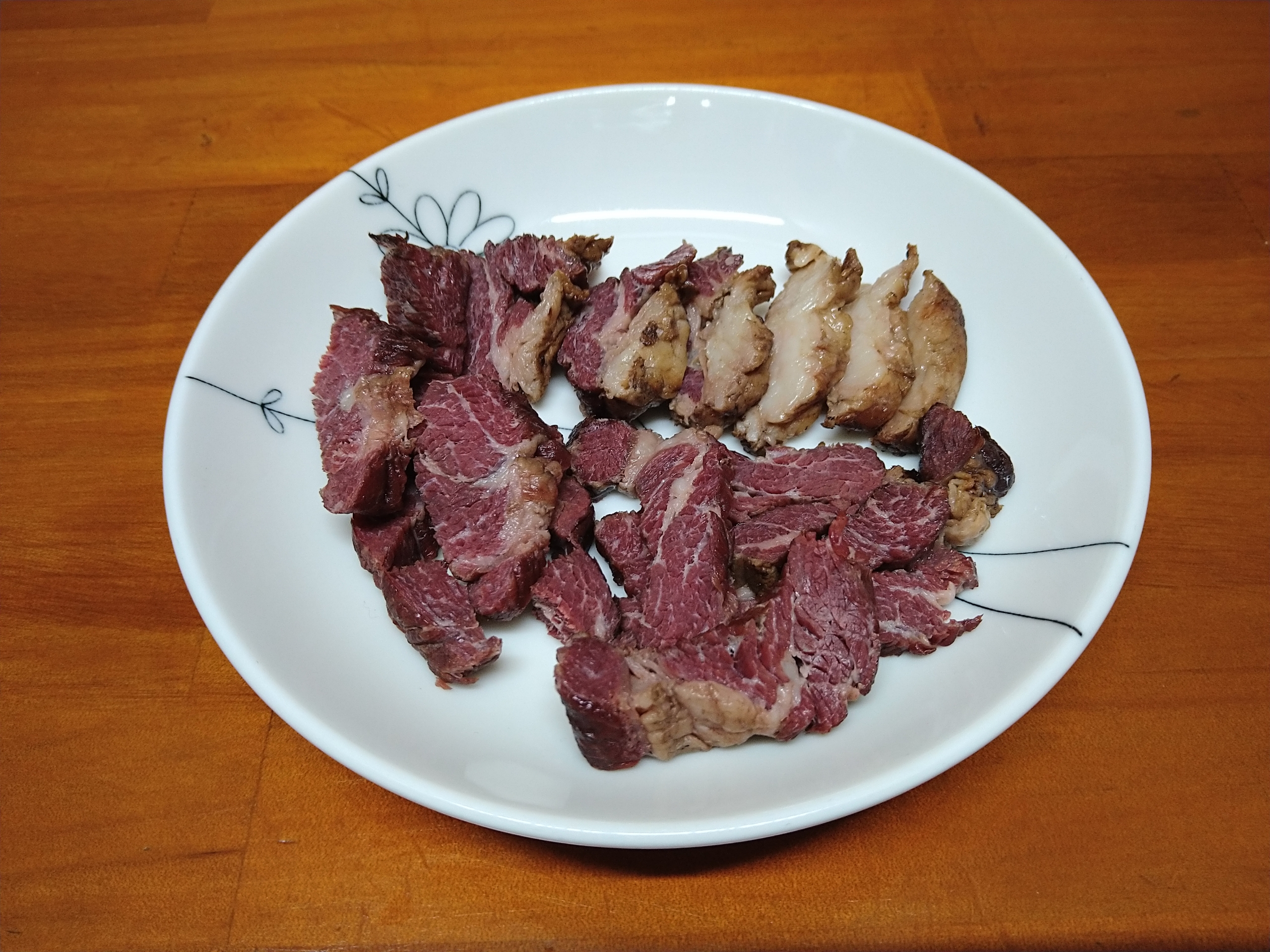 塊で販売されてて冷凍品だったので解凍してスライスして、少しレンチンで温めて脂を溶かして頂きました。食べた感想は適度塩味にスモーキーな香りがあり脂が甘く噛めば噛むほど肉から旨味が出てきてとても美味しいです。日本酒との相性も良く酒が進む一品です。◎