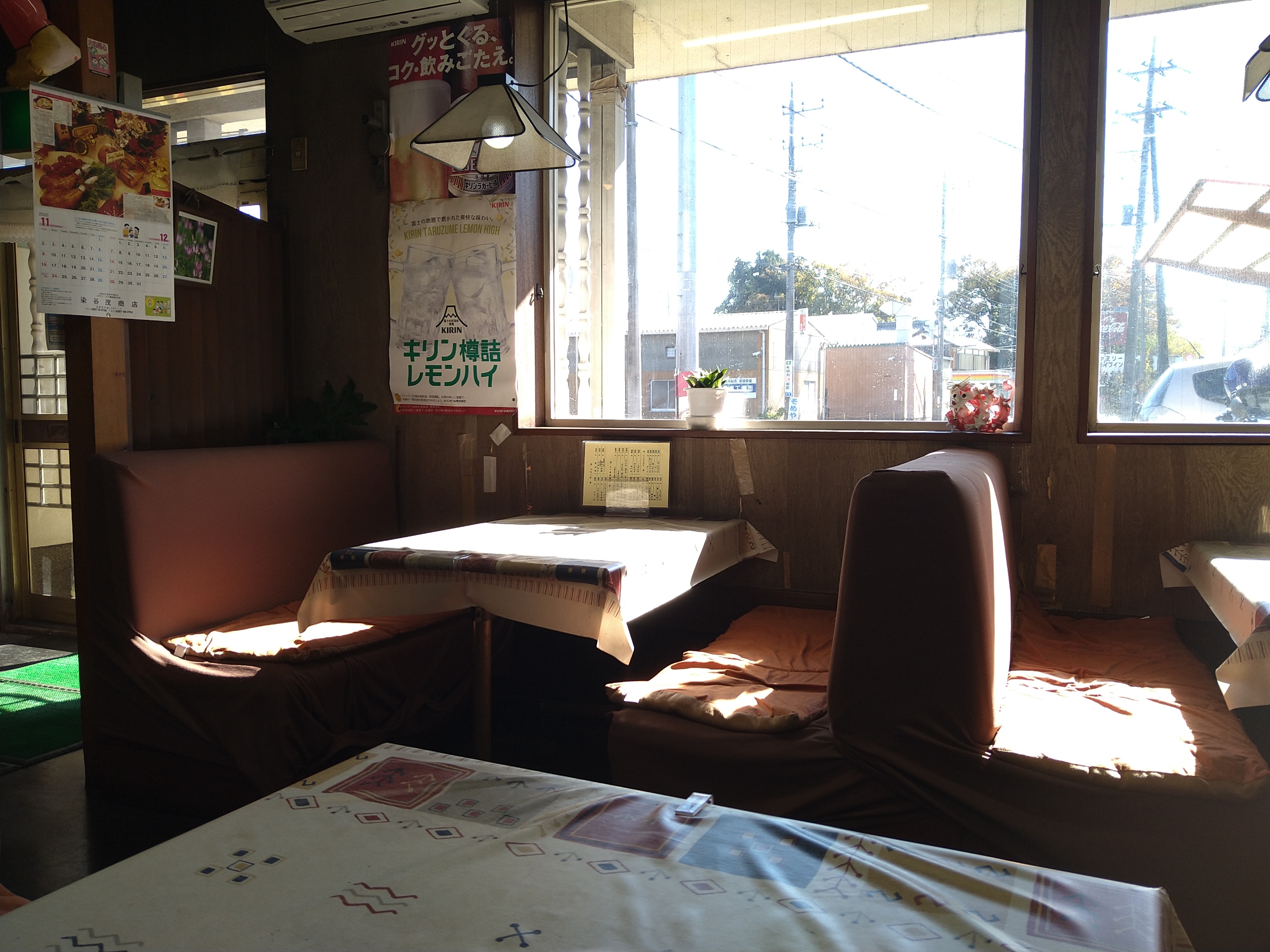 良い天気で温かく窓際の席で食べようと思いましたが、日差しが強く眩しくて席替え