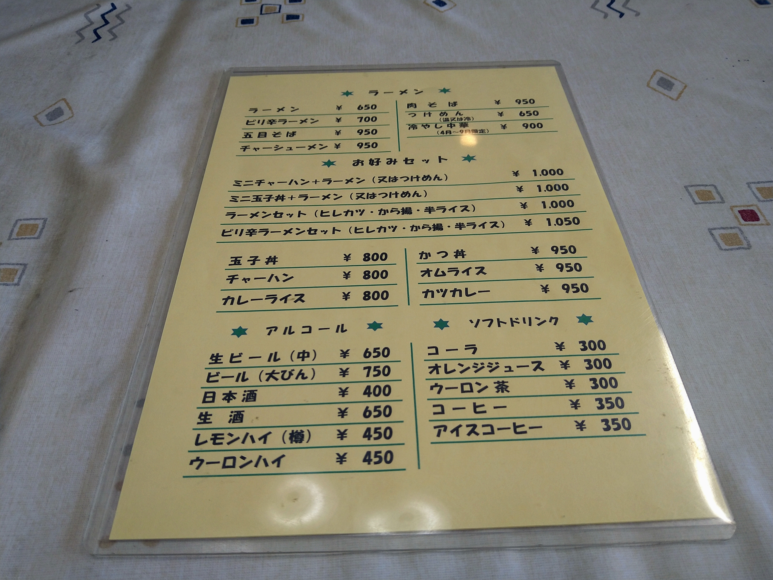 メニューです!ドライブインとしては料理の種類は少なめな感じです。