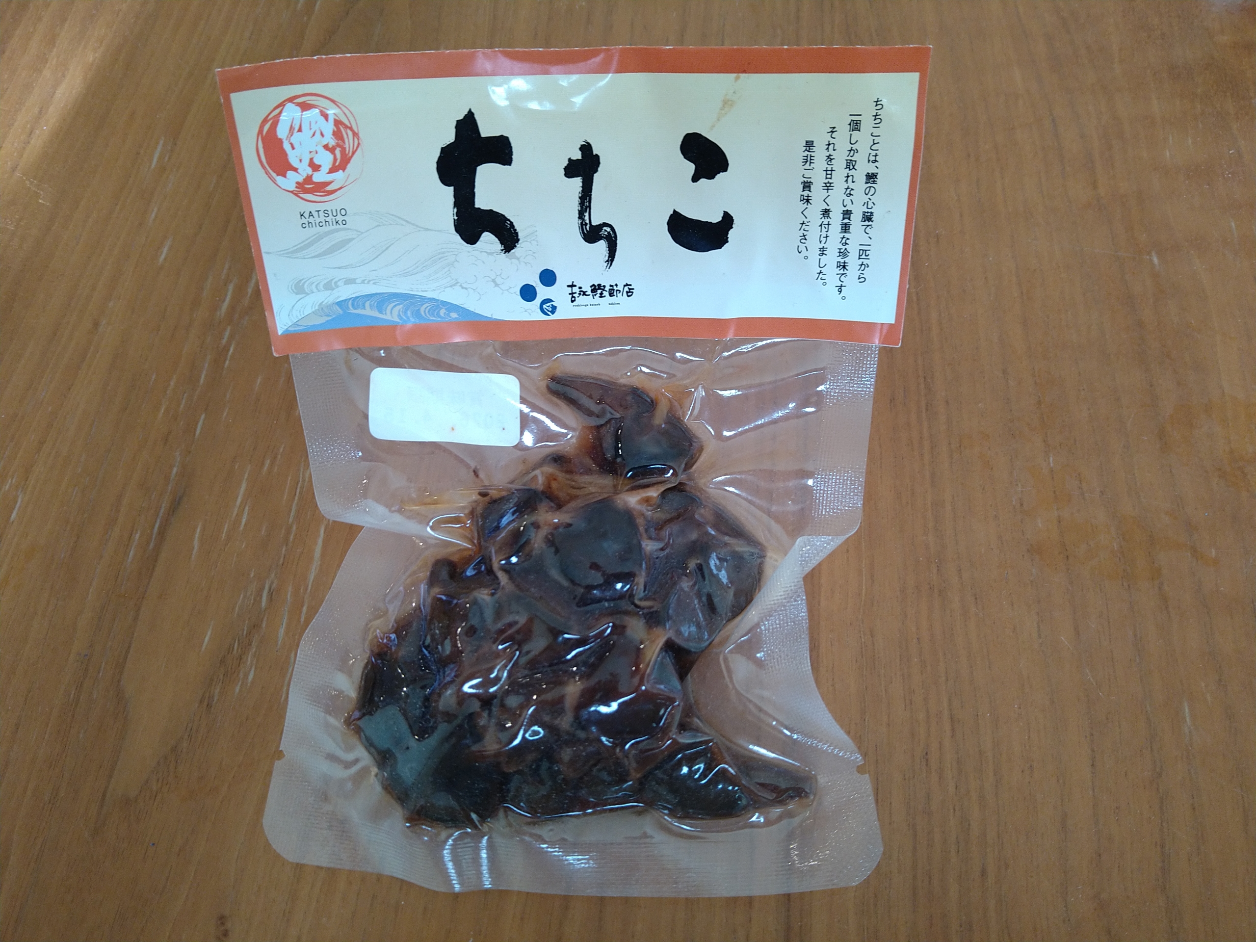 今日の酒の肴は酒と同じくまるごと高知で450円で買った土佐市の吉永鰹節店が製造する鰹ちちこ煮です。ちちことは心臓の事で1匹から1個しか取れないので貴重な珍味です。