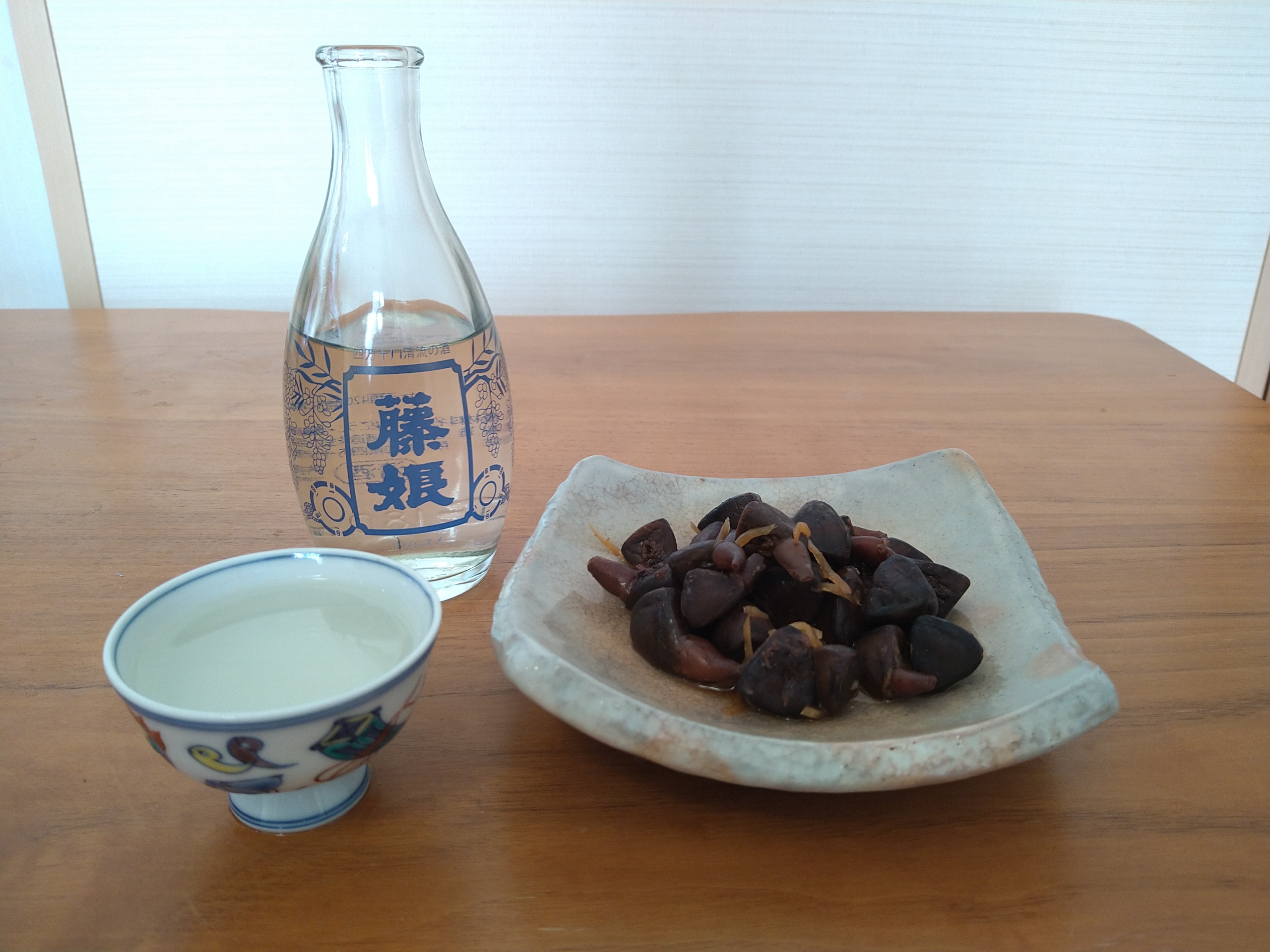 袋から取り出してレンチンで温めて頂きます。心臓なので血液が残ってたりして少し癖(臭味)があるんしょうね。生姜と醤油で煮込んだやや濃いめの味付けで、食感はゴムの様で良い様に表現したら硬めのグミみたいな食感でちゃんと臭味が消えてて美味しく酒との相性も良かったです。
