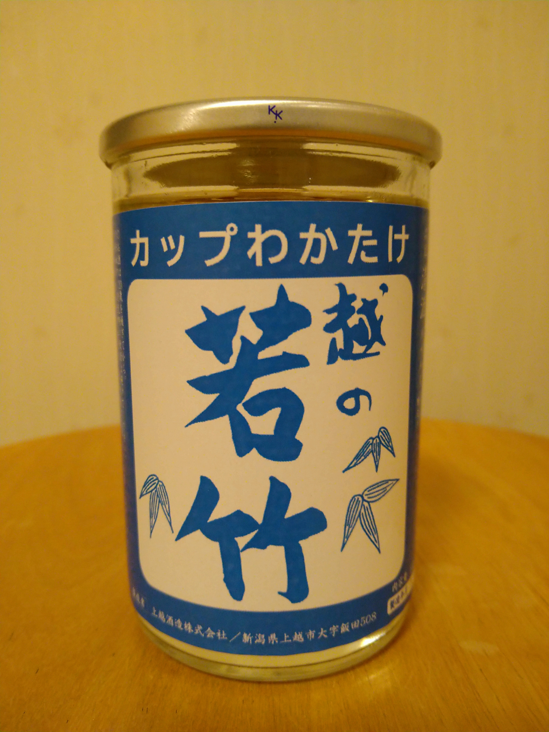 今日は新潟県上越市の上越酒造で253円で購入したカップ酒「越の若竹 カップわかたけ」を飲みました。酒は糖類無添加の普通酒で原料米の米は全て新潟県産米を使用しています。飲んだ感想はやや淡麗の辛口で飲んでて少し苦味が気になりますが、辛いだけでなく旨味もそこそこあって美味しかったです。