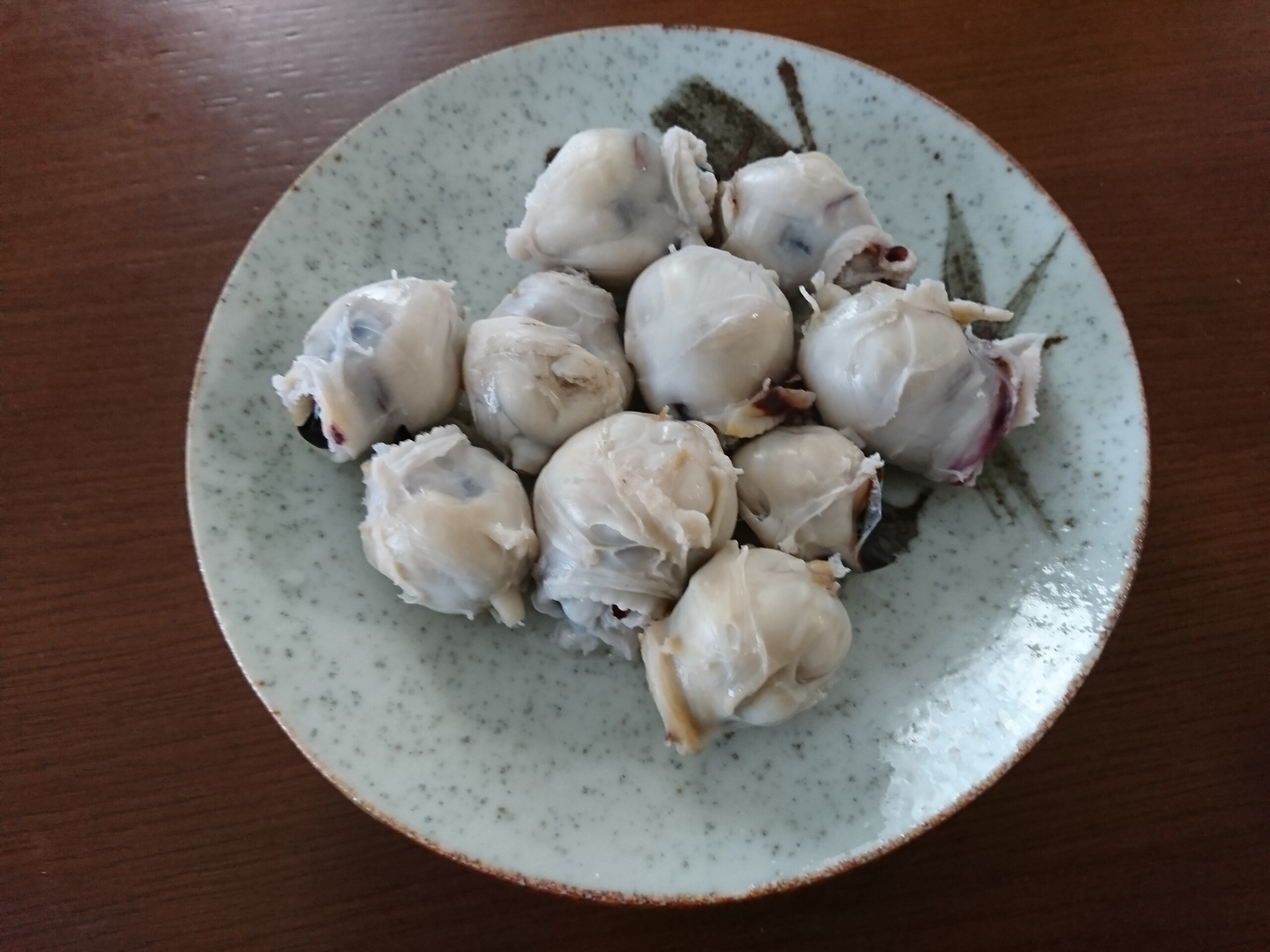 海水と同じくらいの濃度の食塩水で塩茹でして頂きます。イカの口は筋肉なので温かい間は柔らかくて食べやすいが、冷え始めると硬くなります。食感の変化が激しい食べ物ですが旨味が強くて美味しく値段も安価なので良い酒の肴になりますね。