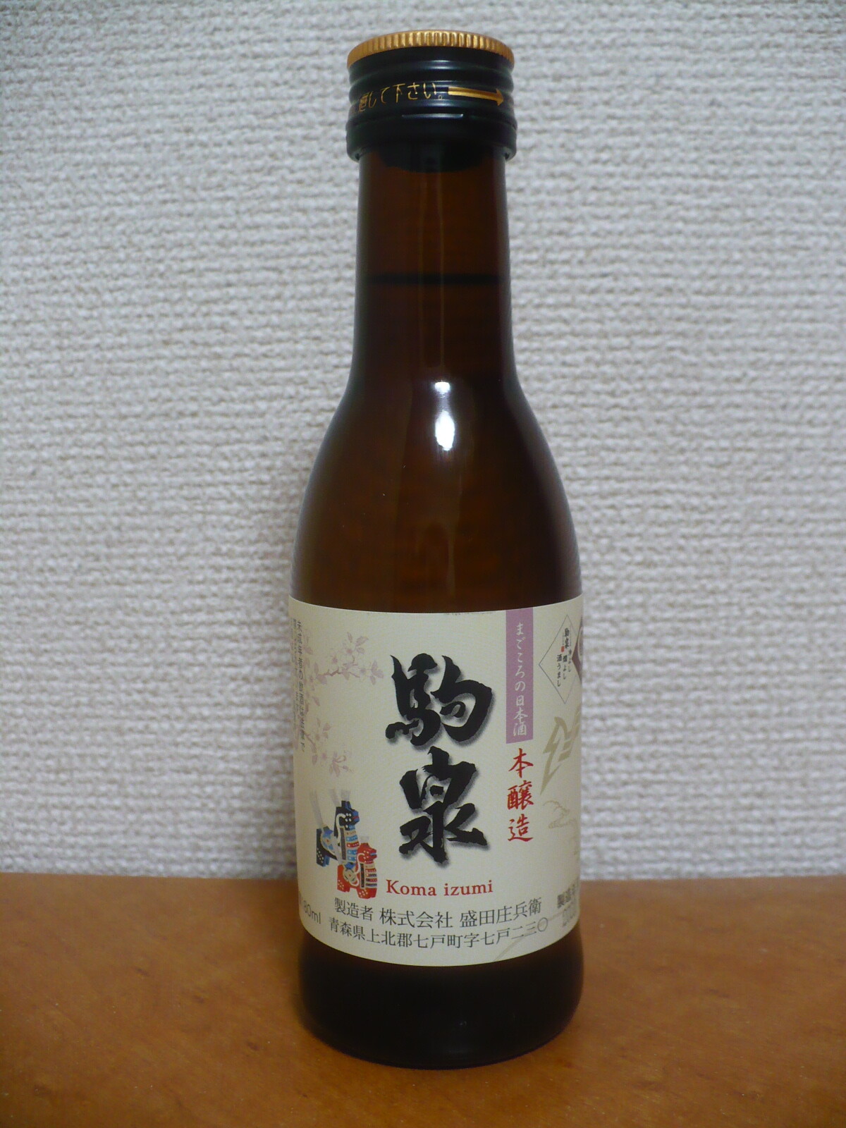 今日は青森県七戸町の酒屋さん・かわさく酒米店で200円で購入した、同町の酒蔵・(株)盛田庄兵衛の酒「駒泉・本醸造」を飲みました。この酒、アロマボトル(180㎖)に入った酒で、アロマボトルの酒って観光地等の土産物向けに販売されている事が多く値段も普通の壜の酒より高く設定されてる傾向にありますが、この酒はアロマボトルですが税込み200円と安いです。酒は本醸造ですが青森県産米を精米歩合65%にまで精米して使用しています。飲んだ感想はやや濃醇なキリッとした辛口の酒で後味はほのかに甘くも感じ濃い旨味のある酒でクオリティーが高くとても美味しい酒でした。