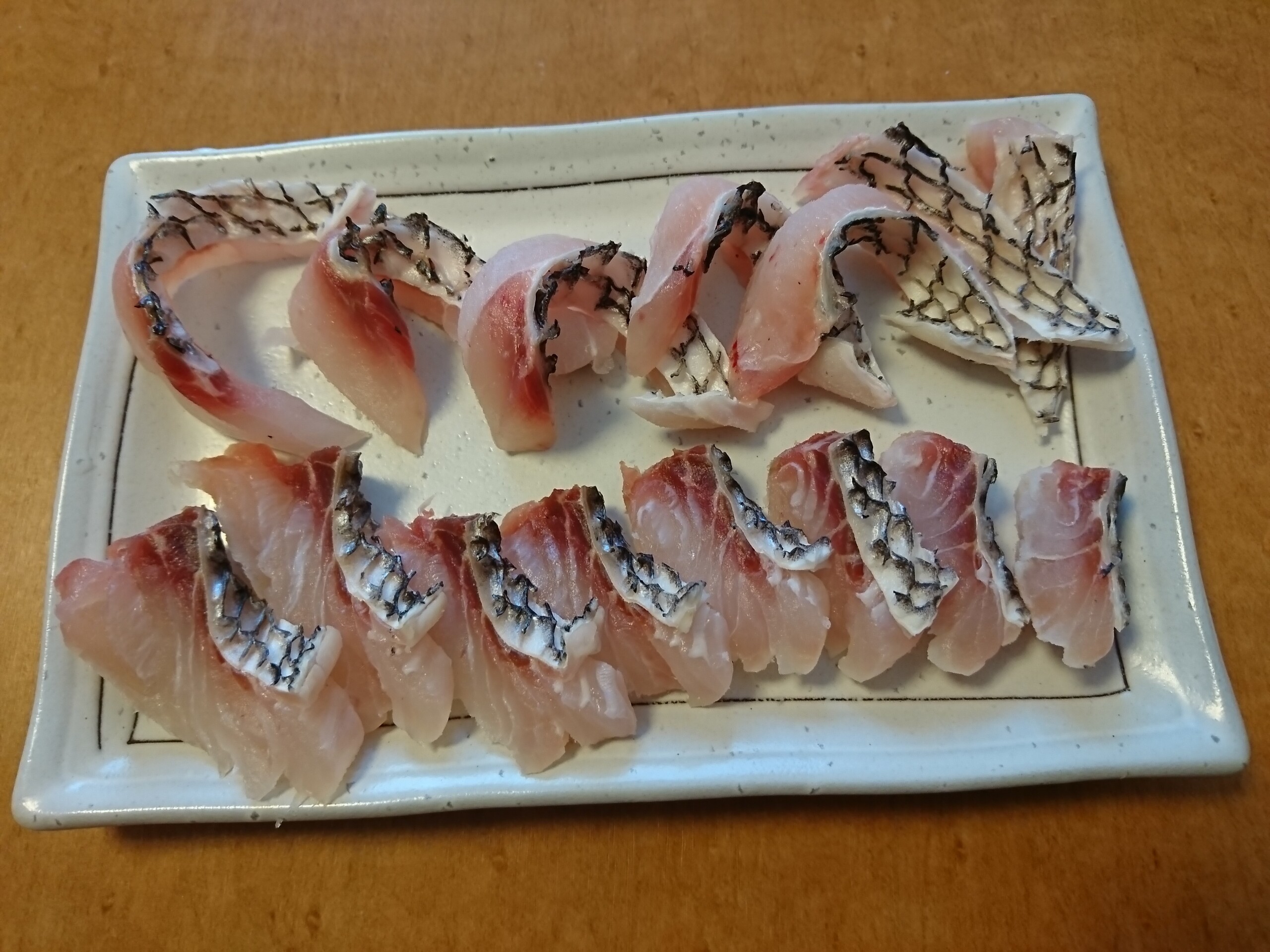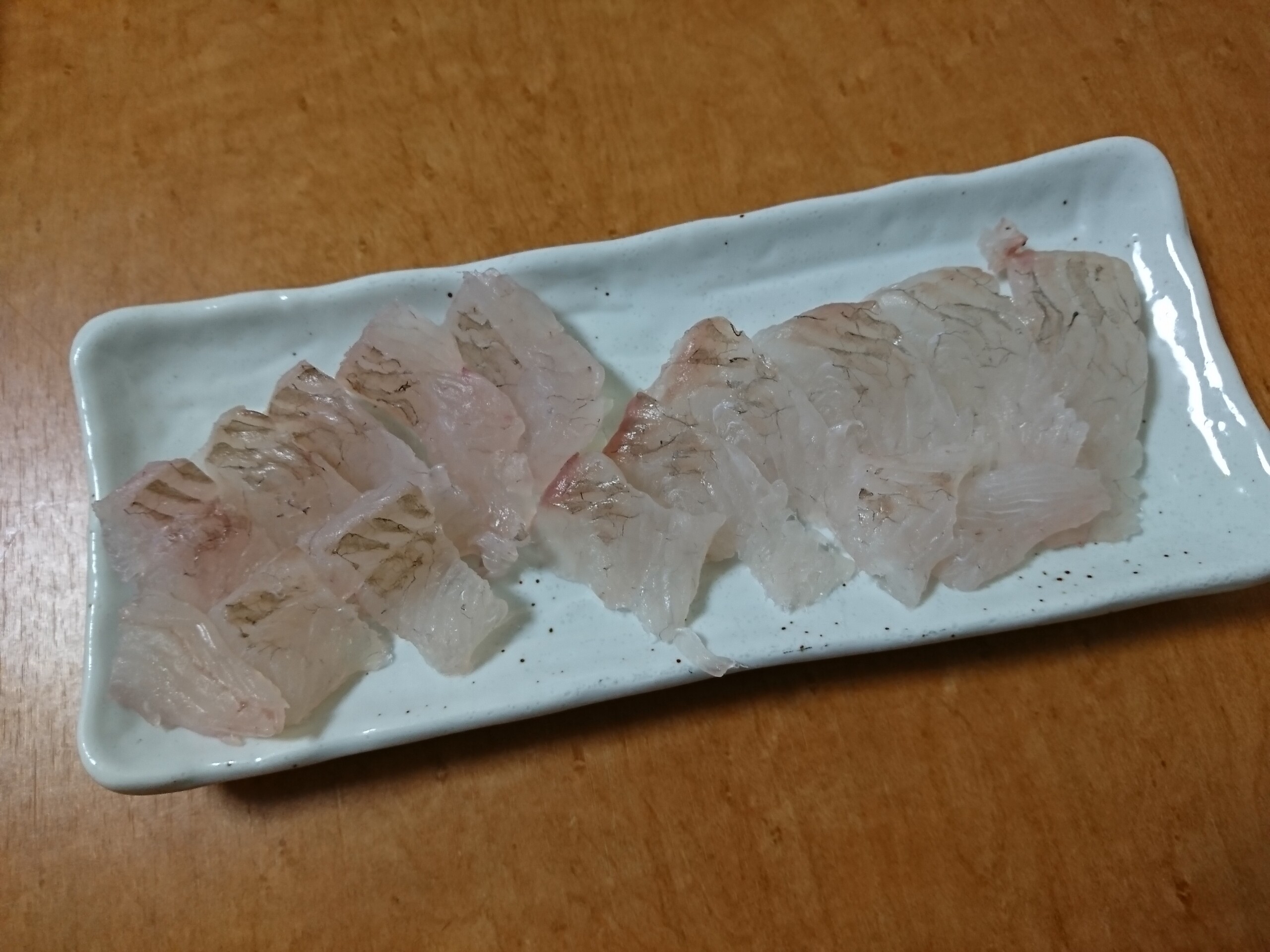 今日の酒の肴は黒メバルの刺身です。脂が全く無い淡白な白身でしたが、癖が無く旨味があって美味しかったです。