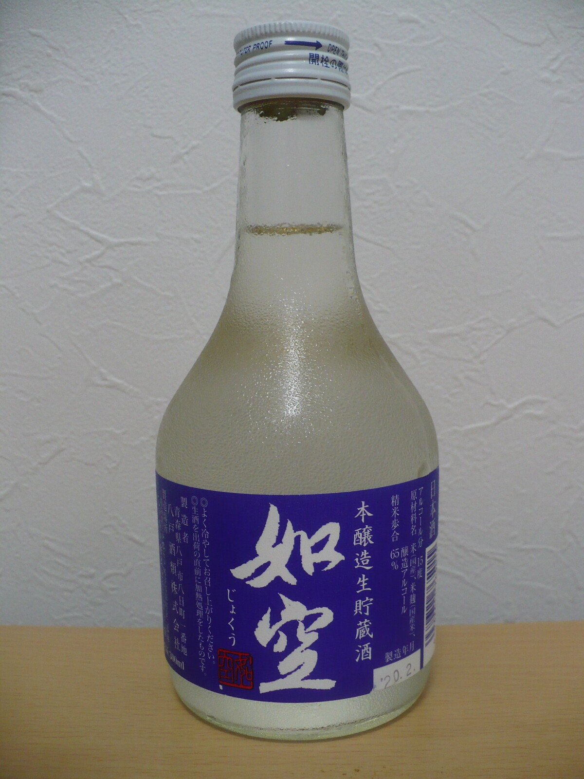 今日は青森県十和田市にあるイオンスーパーセンター十和田店で302円で購入した、五戸町の八戸酒類・五戸工場の酒「如空・山廃仕込シャレボトル」を飲みました。この酒、精米歩合65%の米で山廃仕込みで仕込んだ酒ですが、特定名称酒の表示が無いので山廃仕込みの普通酒と思われます。飲んだ感想はやや淡麗の力強さを感じる辛口の酒で後味は少し苦味が口の中に残りますが、辛口ながら旨味もそこそこあって美味しかったです。