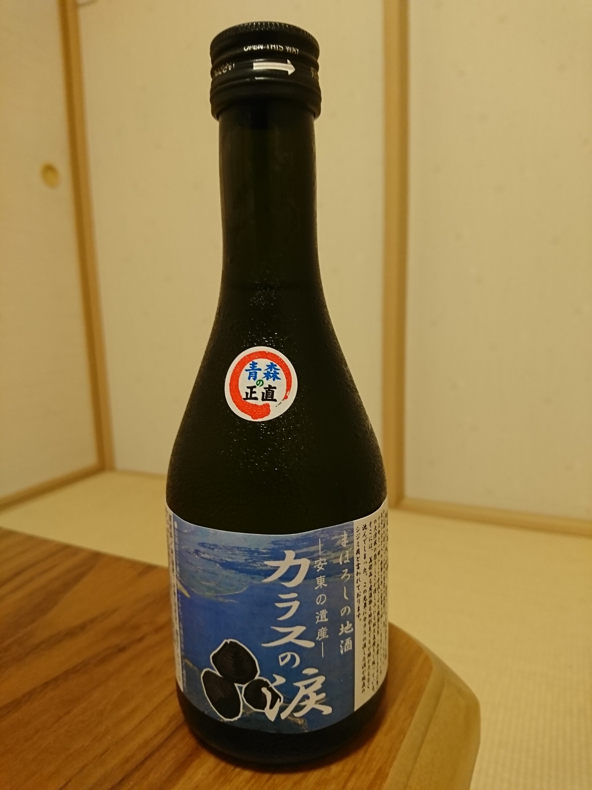 今日は青森県五所川原市にある道の駅・十三湖高原で530円で購入した酒「カラスの涙」を少し冷やして飲みました。この酒、弘前市の酒蔵・丸竹酒造店が製造していますが、野辺地町の工藤商事と言う会社が発売元となっていて、十三湖名物のシジミにあやかった企画商品と思われます。酒は特定名称酒等の表示が無いので糖類無添加の普通酒でしょう。飲んだ感想はやや濃醇な辛口の酒で飲んでて微かにカビ臭っぽいオフフレーバーがありますが、後味は熟成した濃い旨味のある酒で結構美味しかったです。