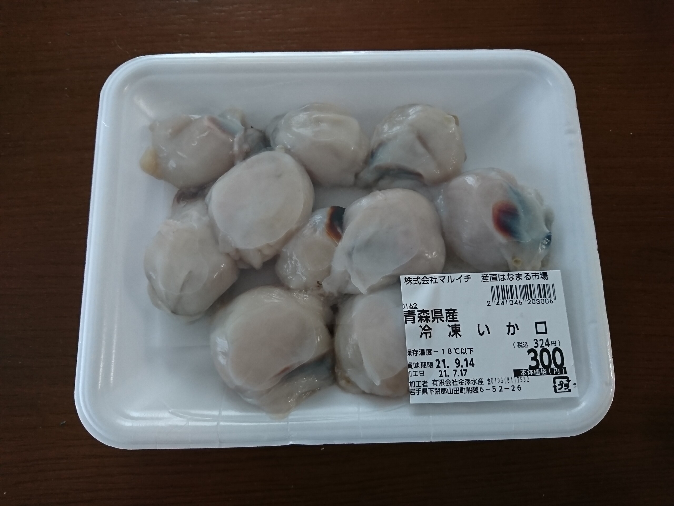今日の酒の肴は冷凍物ですが青森県産のイカの口です。