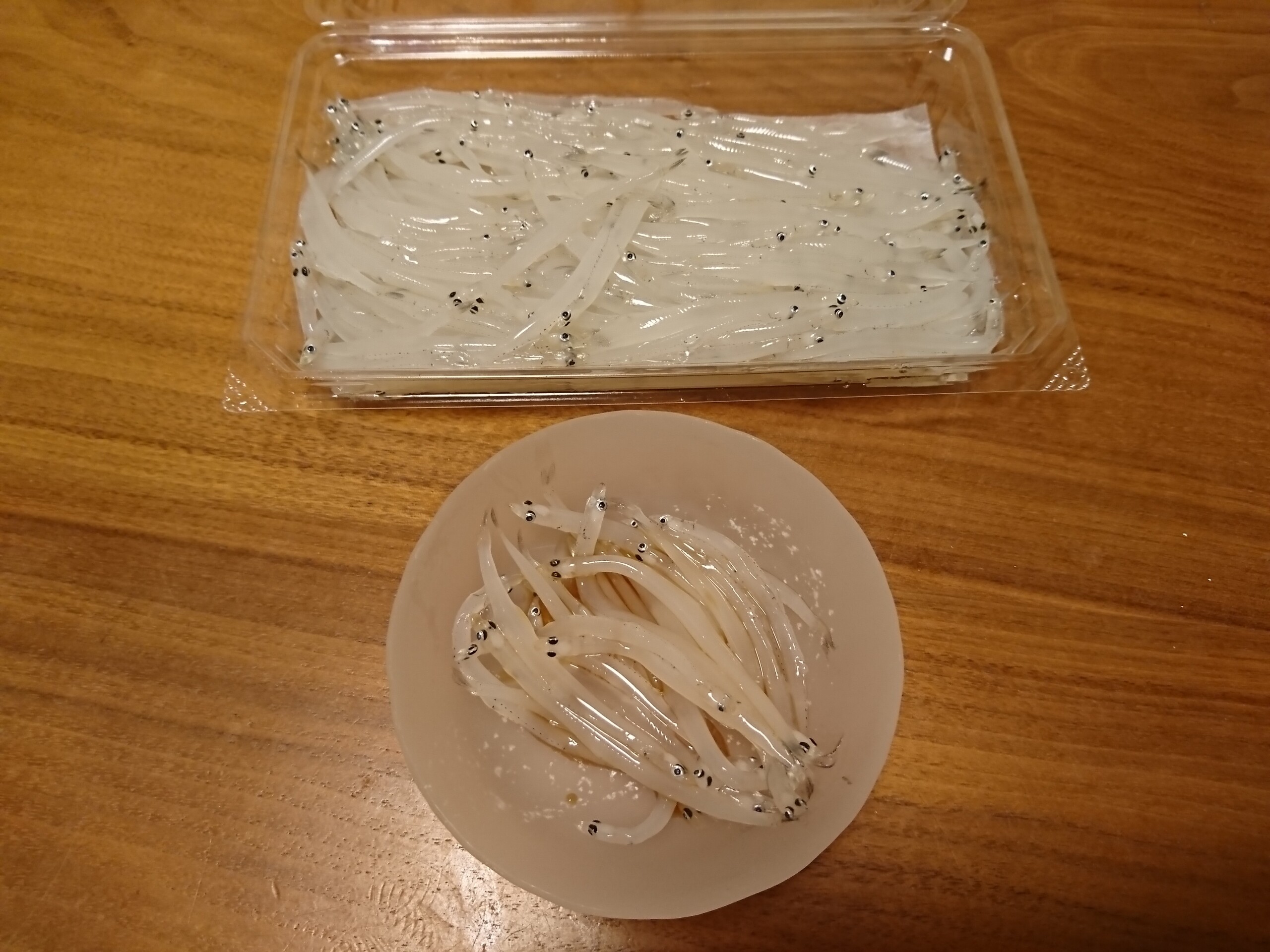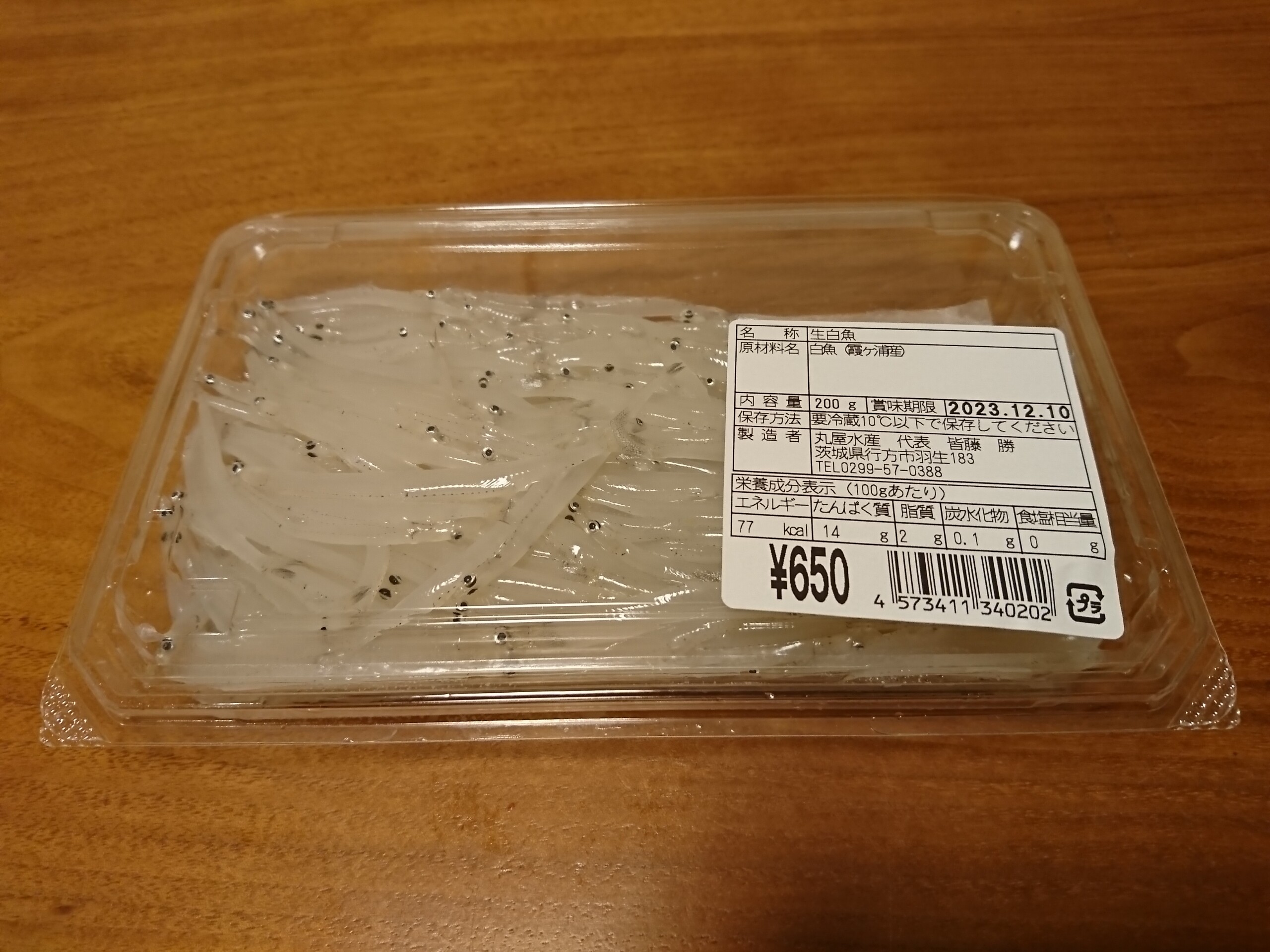 今日の酒の肴は行方市観光物産館こいこいで買った霞ヶ浦産の白魚です。