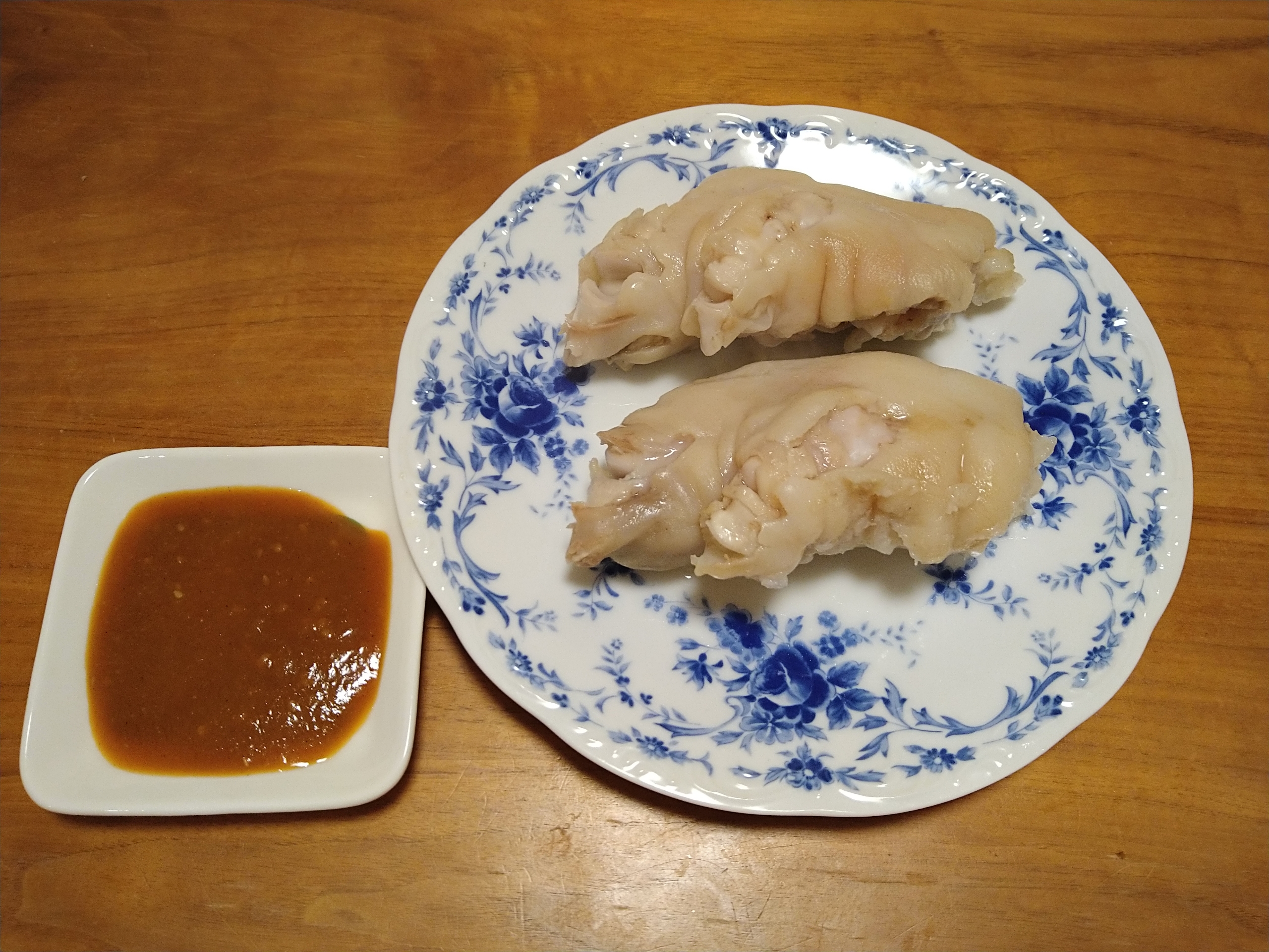 今日の酒の肴は茨城県取手市の(有)小山と言う会社が製造する豚足です。