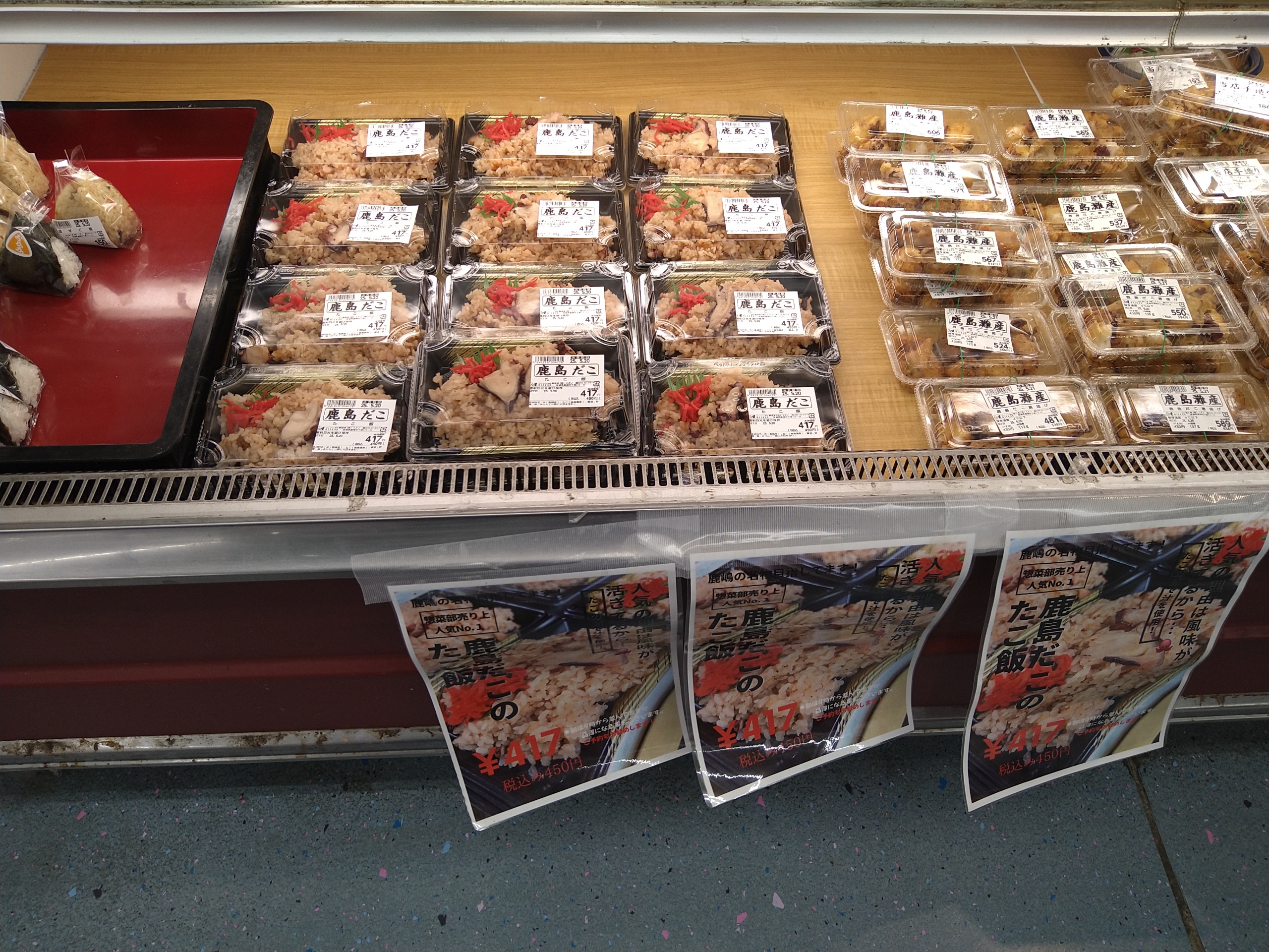 コミュニティーストア ミズノは全日食チェーンに加盟する個人経営のミニスーパーで、地元・鹿島灘で獲れた新鮮な鹿島だこを使った、たこ飯が大人気のお店でTVでも紹介された事があるそうです。惣菜コーナーには人気のたこ飯がずらっと並びます。