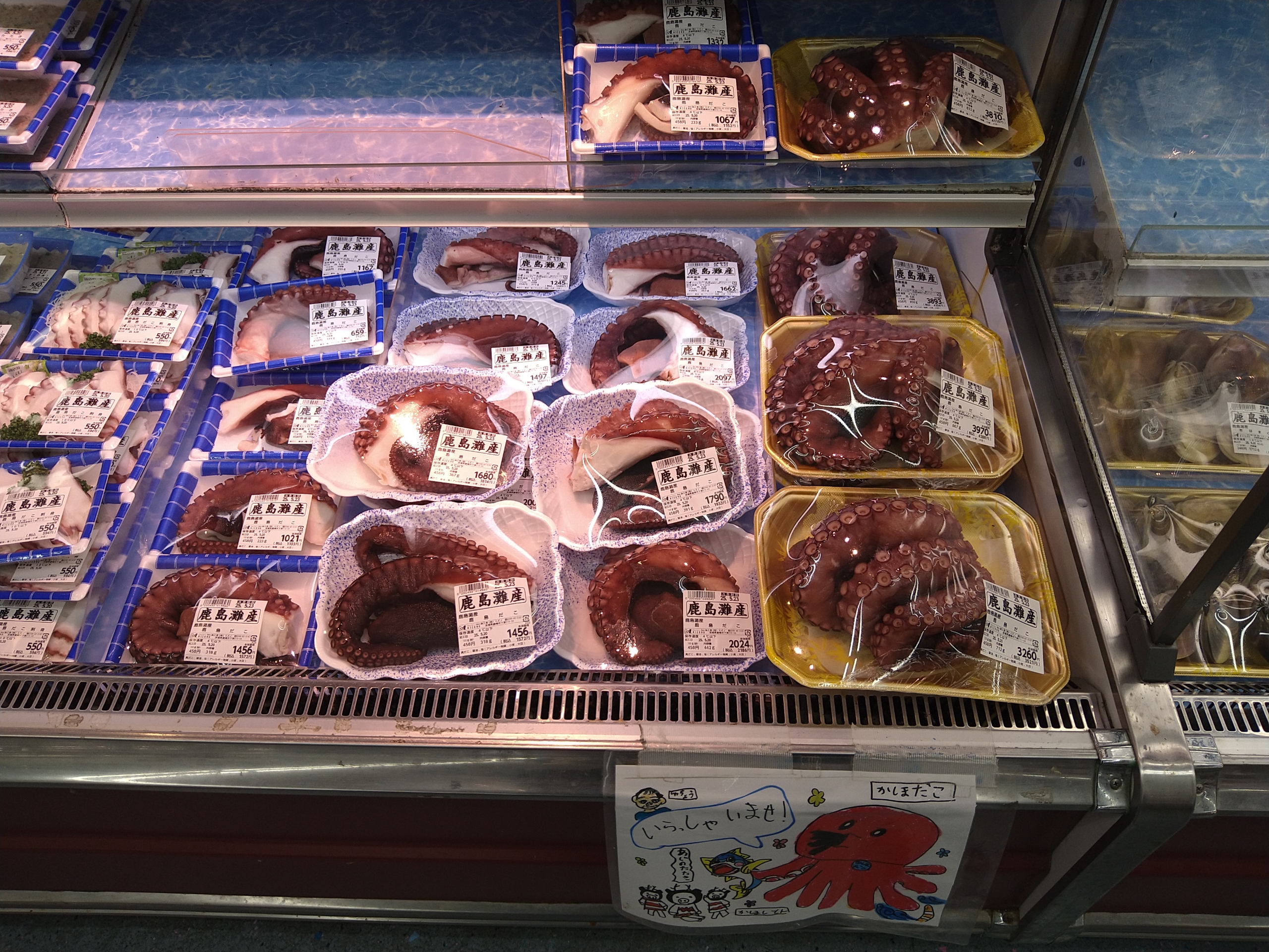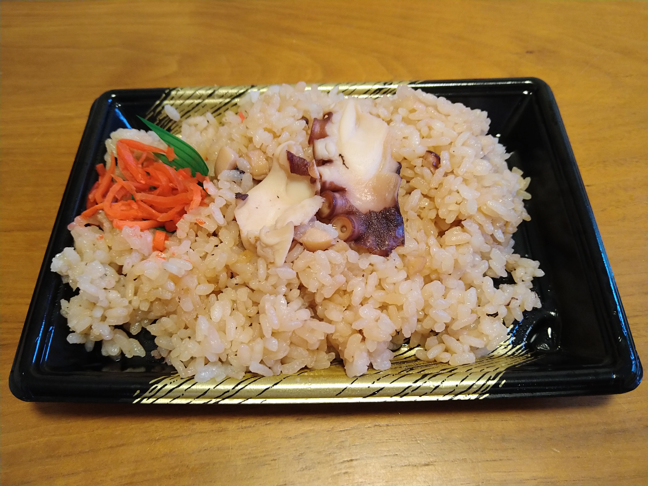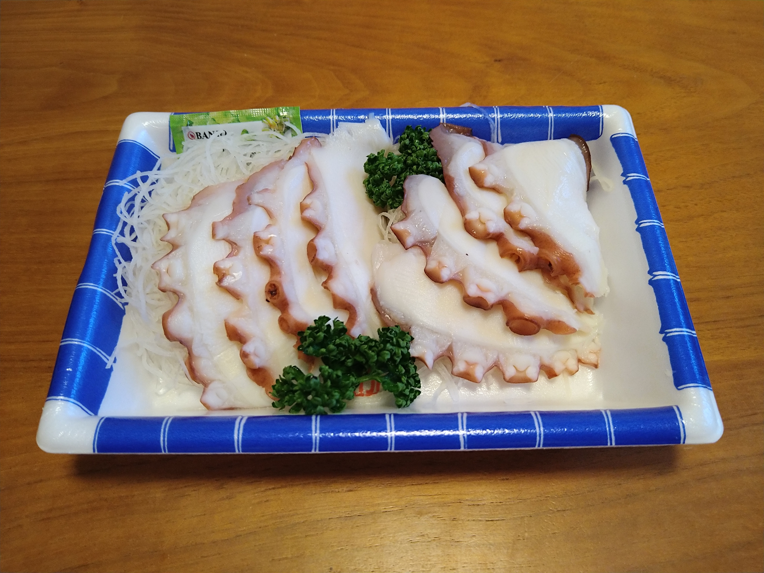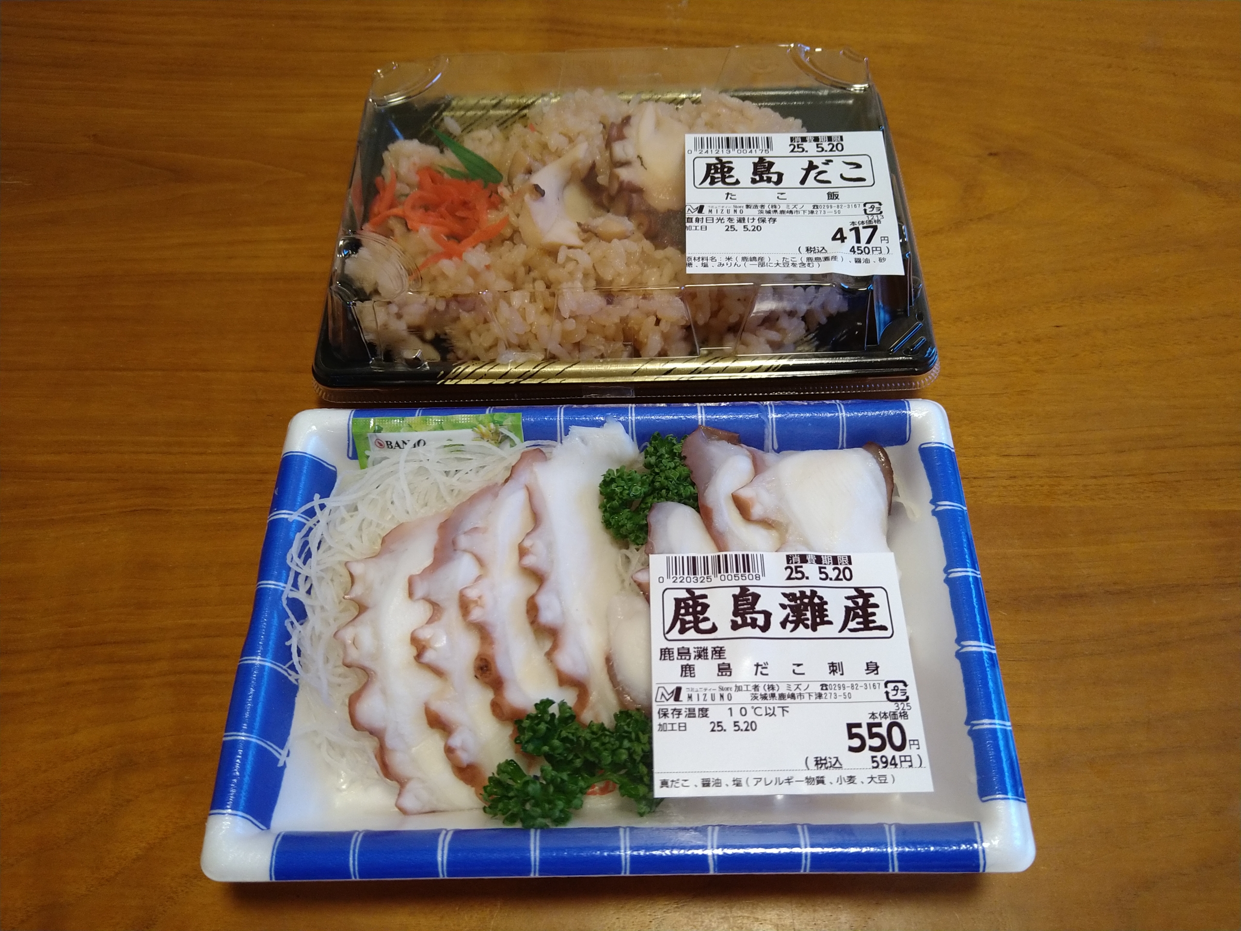 今日の酒の肴はコミュニティーストア ミズノで買った、たこ飯と鹿島だこの刺身です。