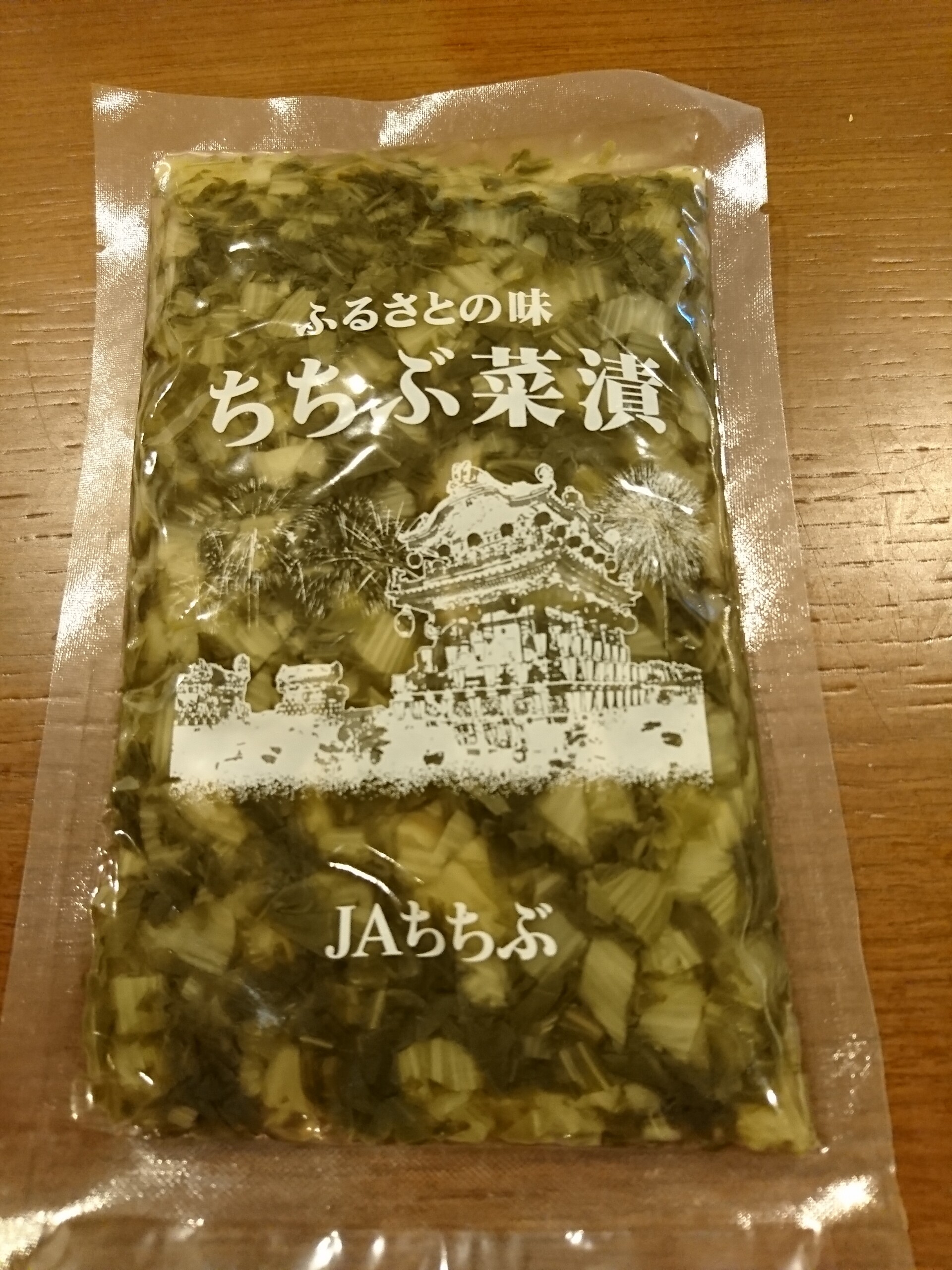 今日の酒の肴はJAちちぶが製造する秩父名産のちちぶ菜漬です。ちちぶ菜と言う名前ですが、正式にはしゃくし菜ですが地元産を使用しています。