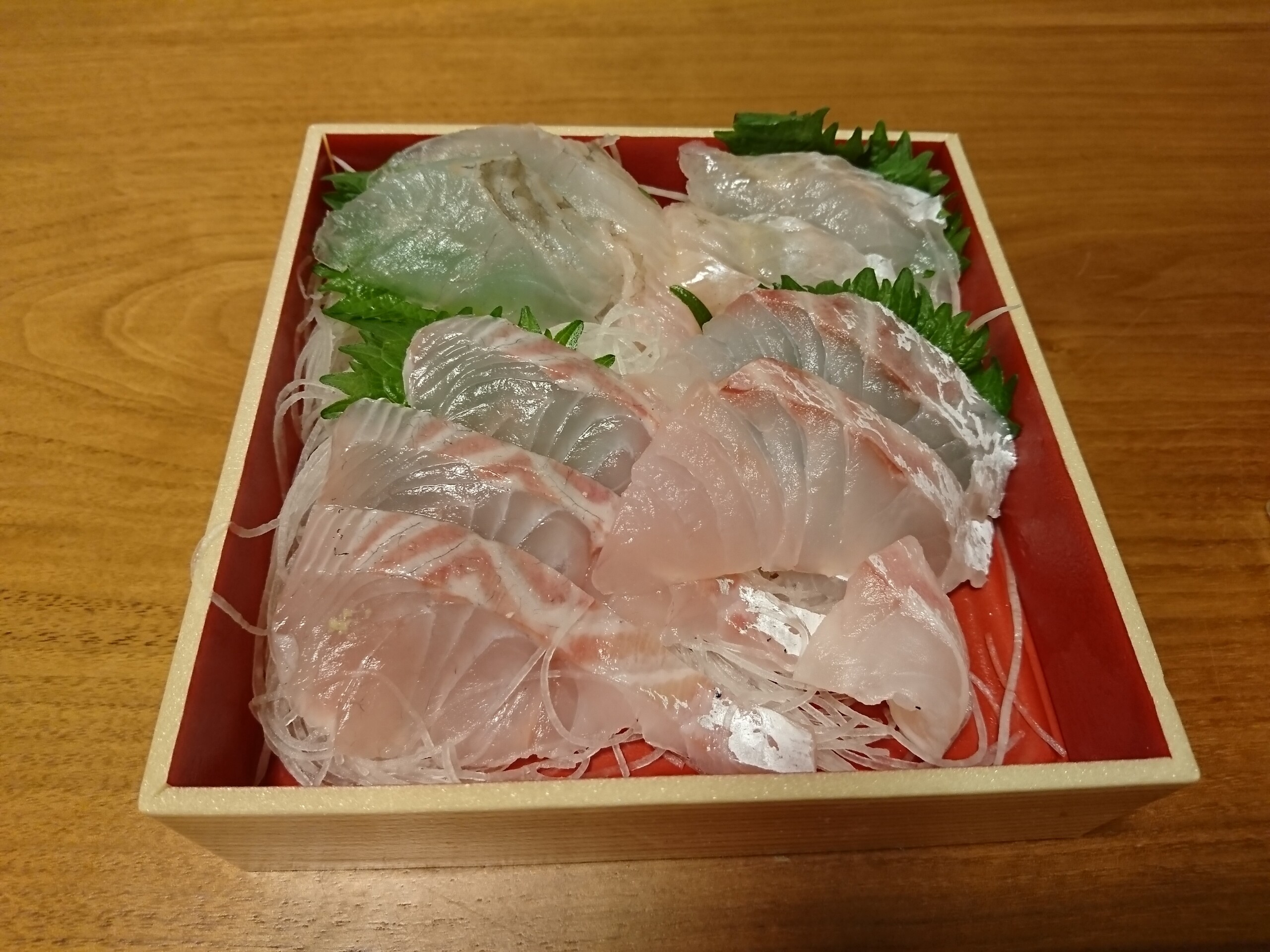 平目・真鯛・スズキとちょっと珍しいゆめかさごが入っています。どれも鮮度抜群で適度に脂がのっててメチャ美味しい!これで1260円は価値がありますね。美味過ぎて酒が進みます!