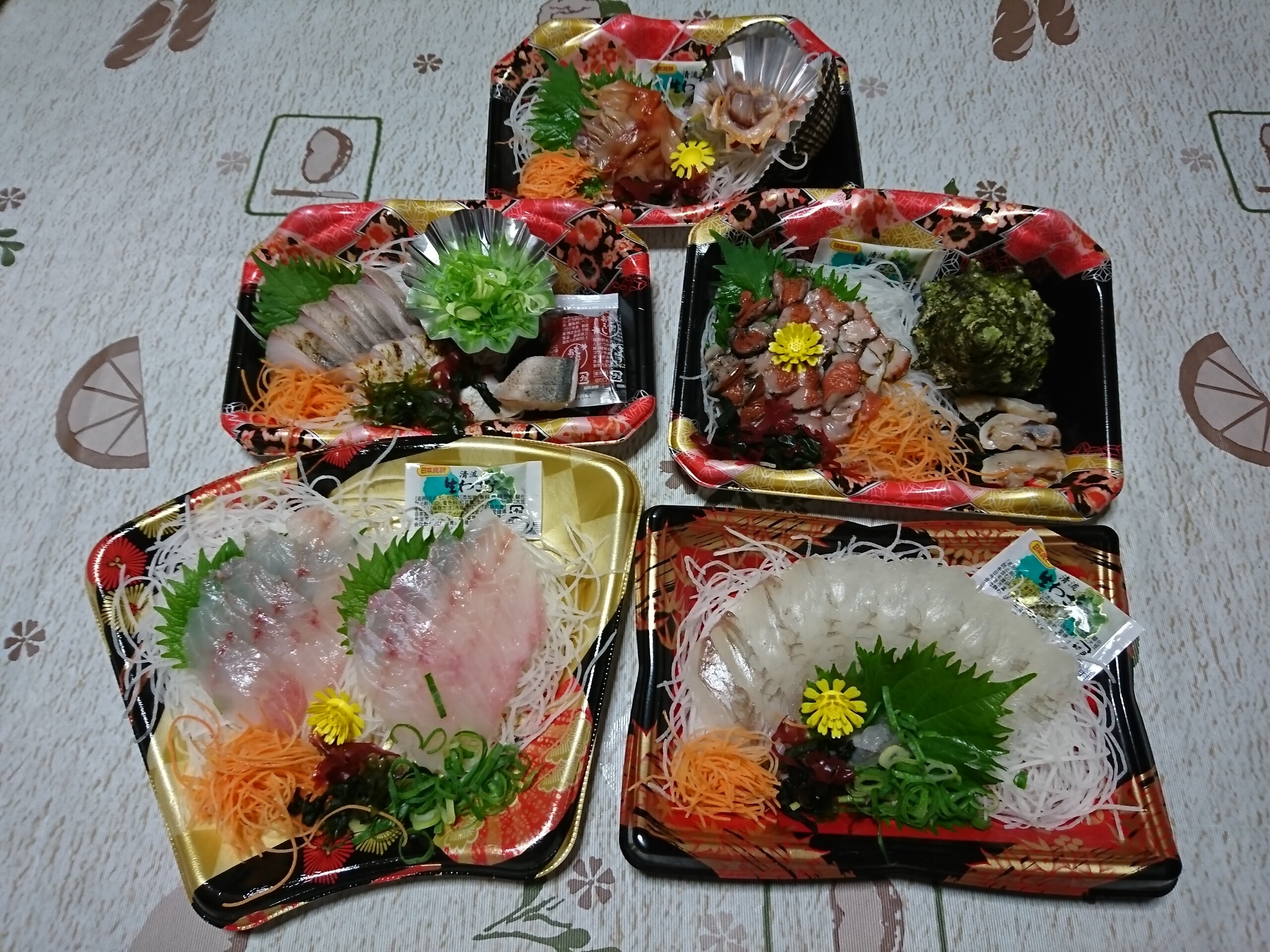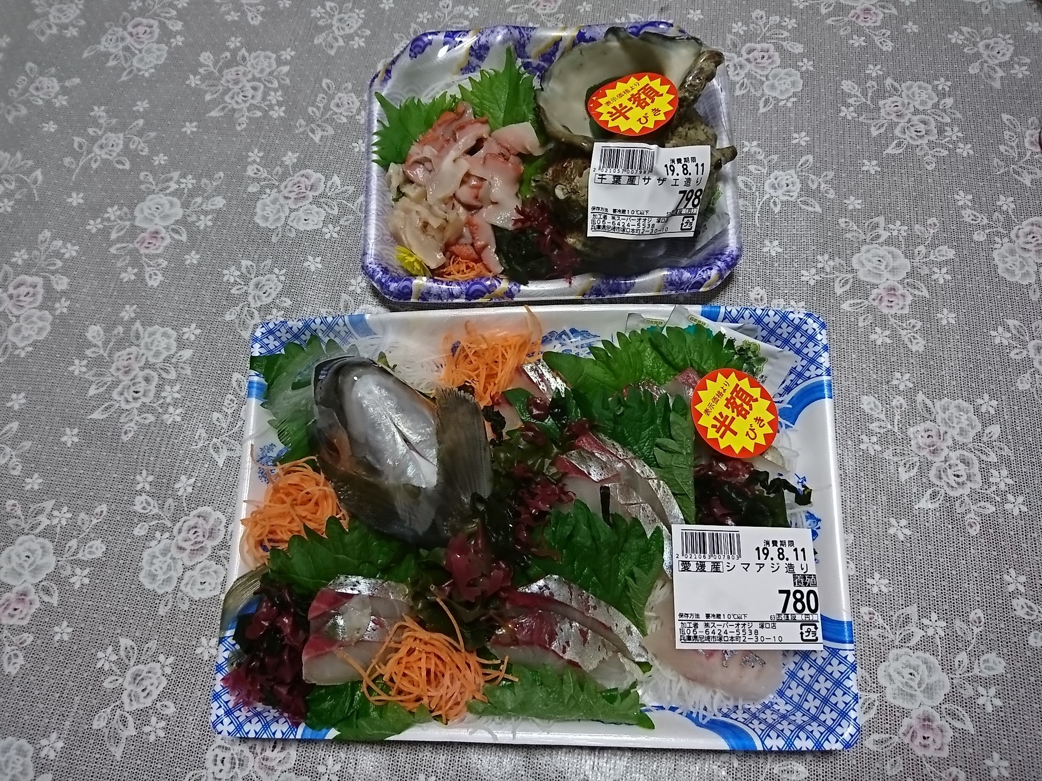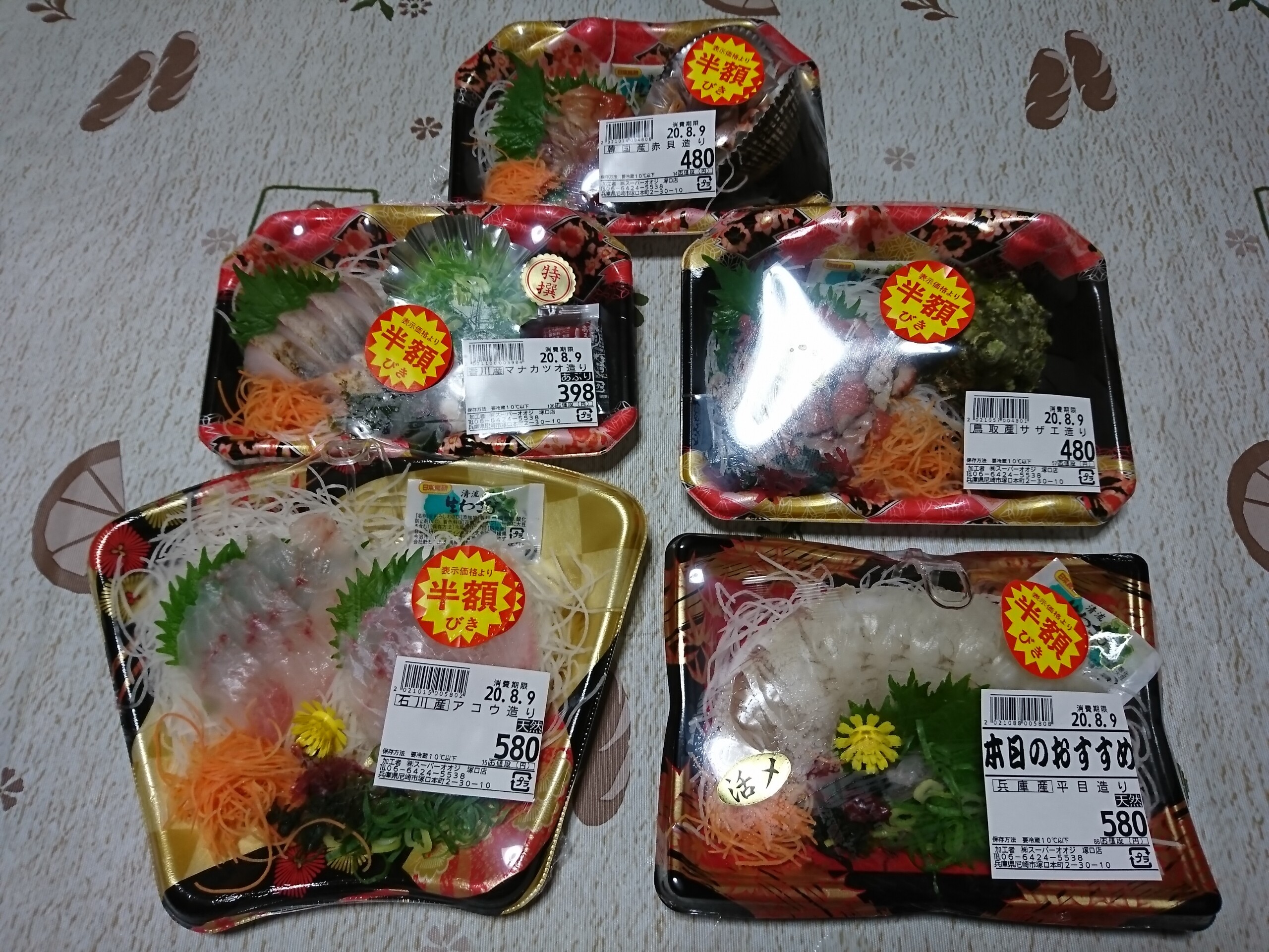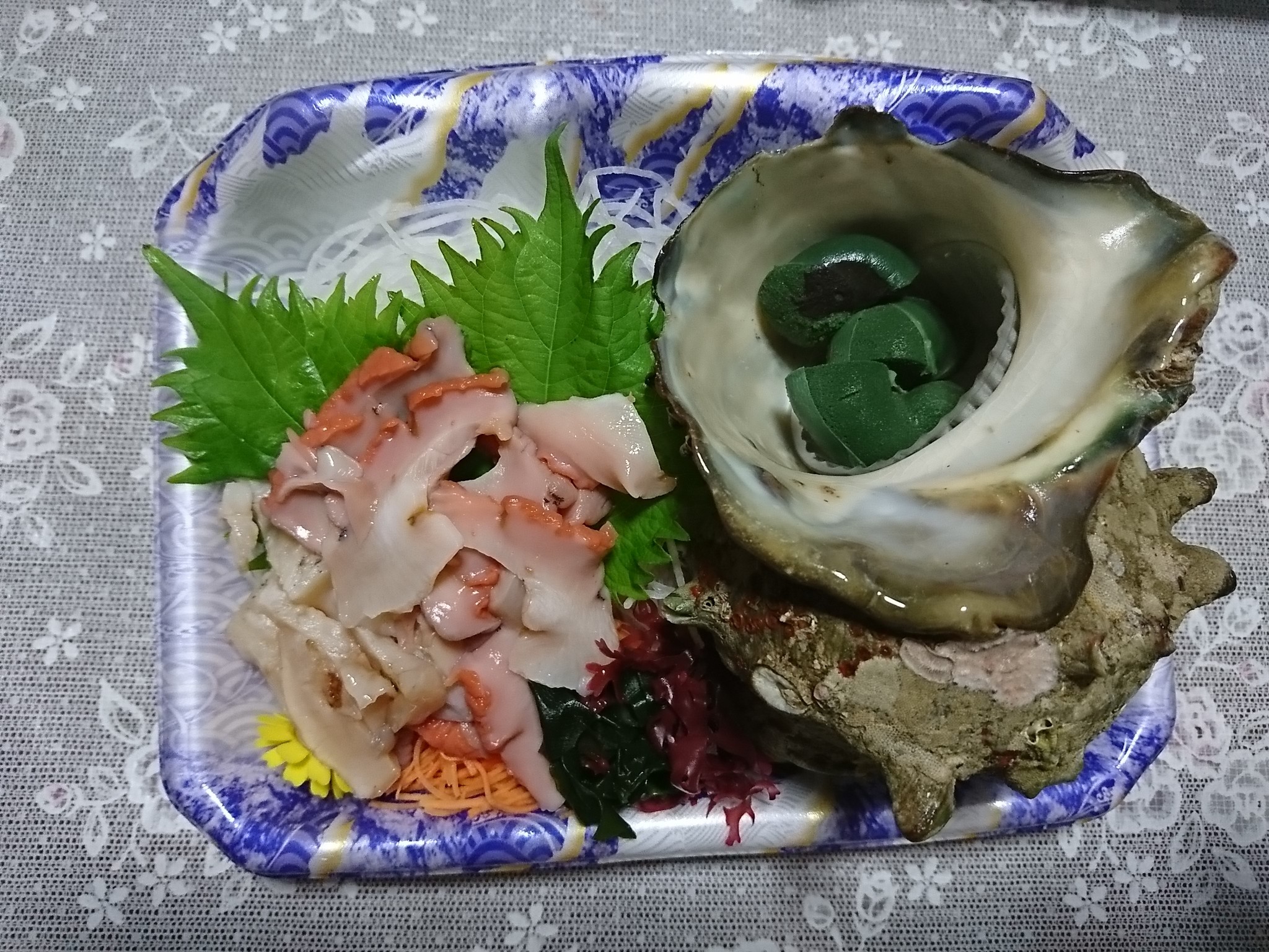 今日の酒の肴は尼崎市の塚口にあるスーパーオオジで半額で買った造りです! 今日はヒラメにアコウ・マナガツオ・サザエ・赤貝です。