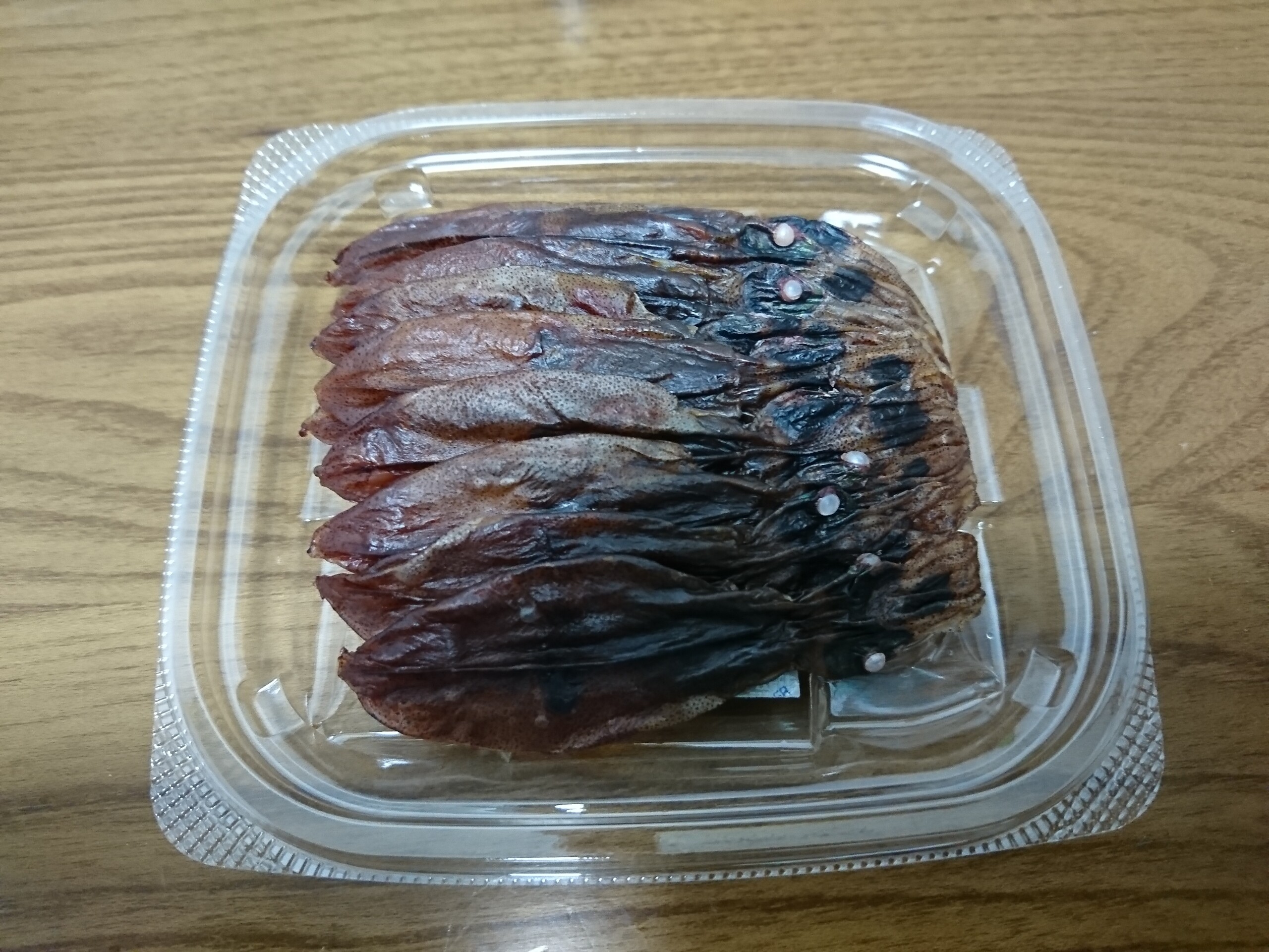 食べた感想はソフトジャーキーみたいな感じで柔らかいです。でも目の部分は非常に硬いですが、内臓ごと干してるのでホタルイカの旨味が非常に強く、そのままでも美味しかったですが、軽く火で炙って食べると更に美味しかったです。