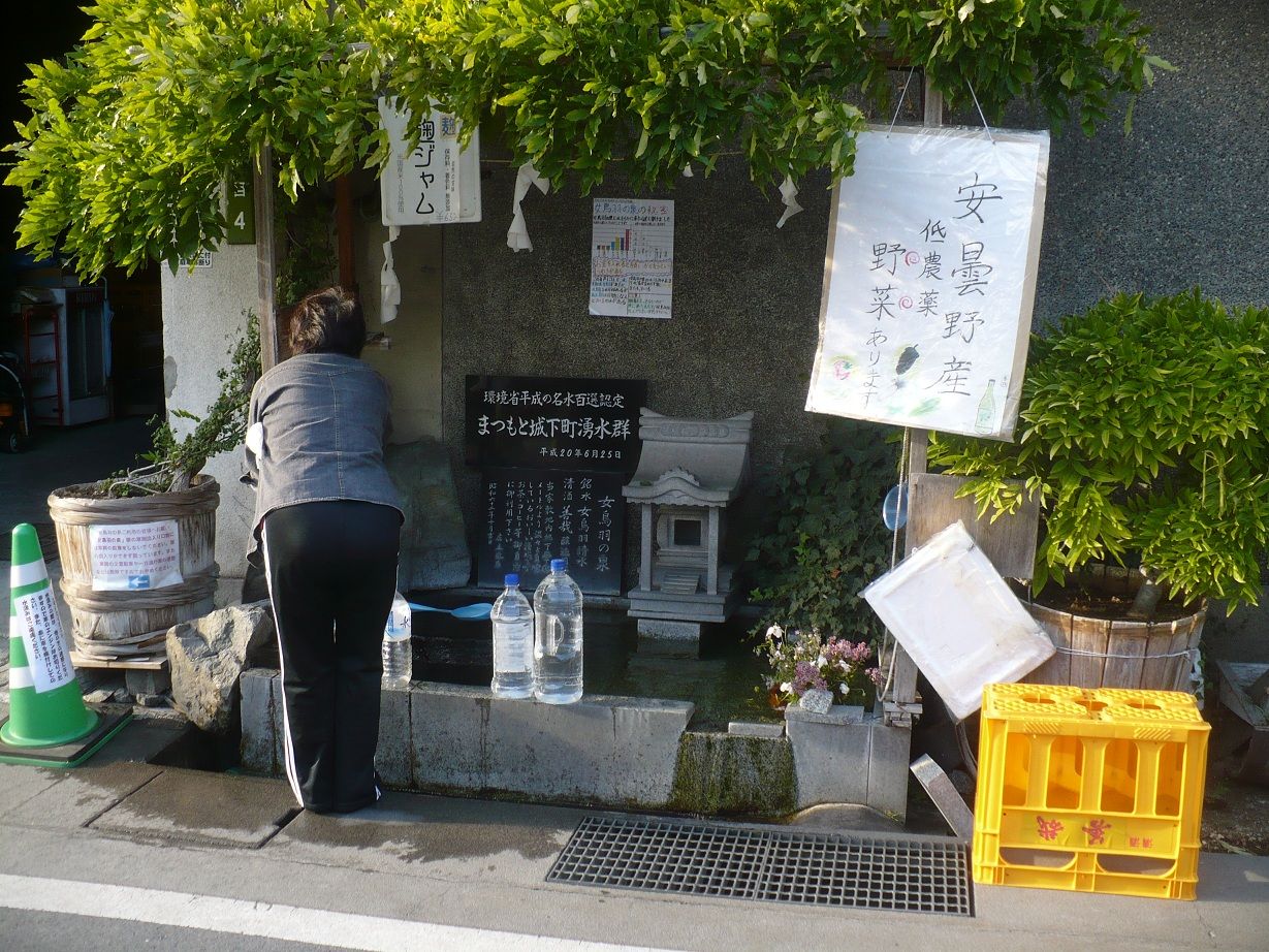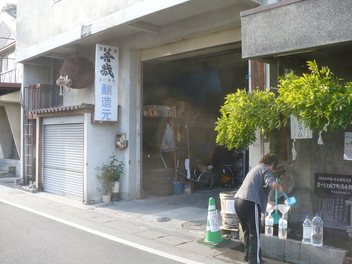 酒蔵の前には天然水が湧き出していて、近所の人たちが次々と天然水を汲みに来ていました。私もPETボトルに汲んで飲んでみましたが、冷たくてとても美味しかったです。