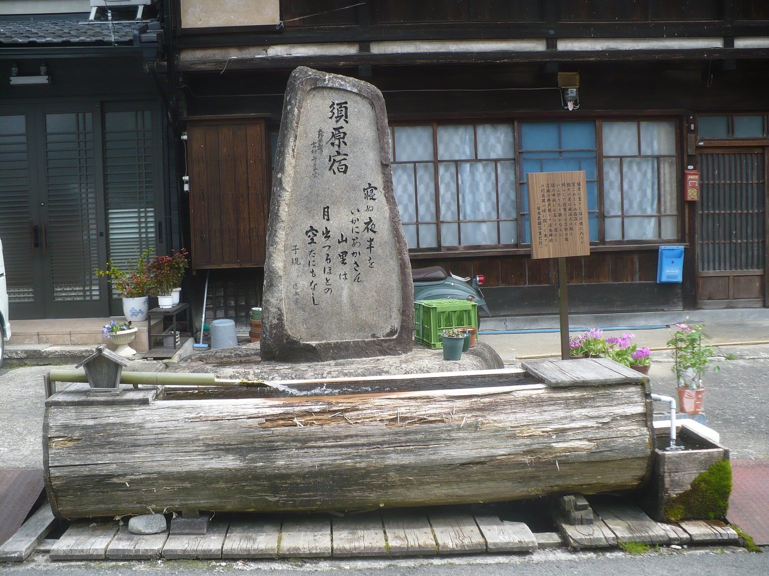 酒蔵の前には須原宿の石碑と冷たくて綺麗な水が湧き出ていました。
