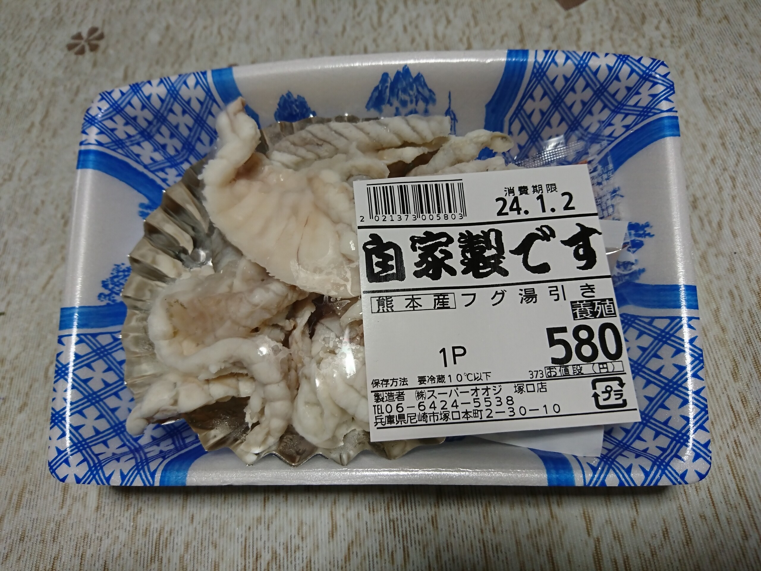 今日は実家の近くのスーパーで買った熊本県産のトラフグの湯引きです。