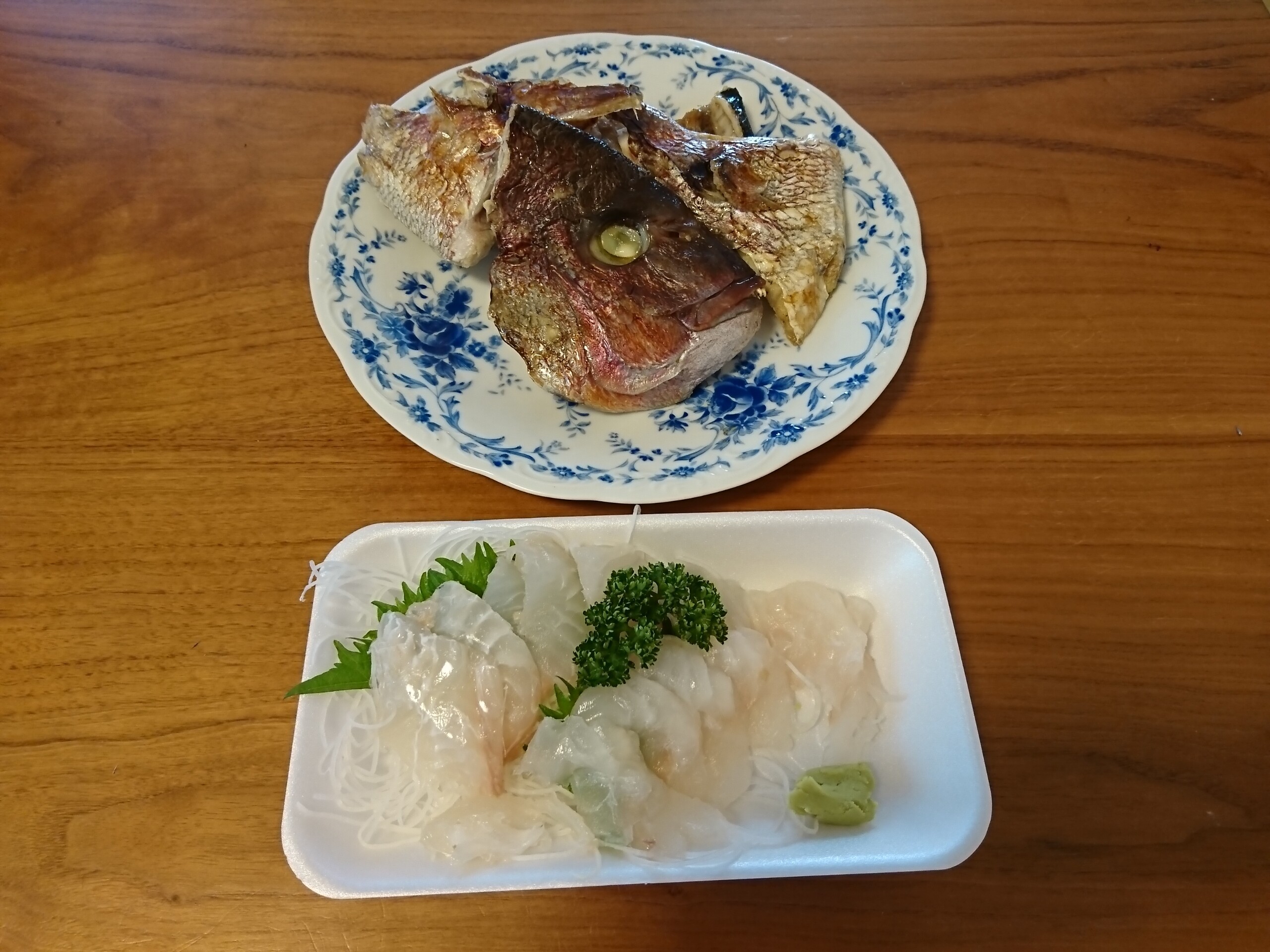 買ったのは平目の刺身と真鯛のアラ焼きです。