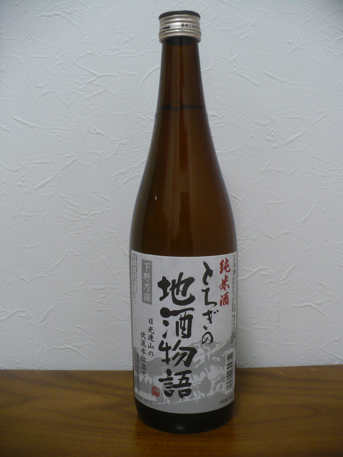 今日は那須塩原市内にあるドラッグストアーのカワチ・下永田店で858円で購入した、小山市の酒蔵・三福酒造の酒「とちぎの地酒物語・純米酒」を飲みました。酒は精米歩合68%の米で仕込んだ純米酒で飲んだ感想はやや淡麗のキリッとした辛口の酒で、飲んでて少し強めの酸味と後味に苦味がありますが、淡麗の純米酒ながら適度な旨味が感じられる酒で、4合壜で858円の純米酒としては結構美味しかったです。