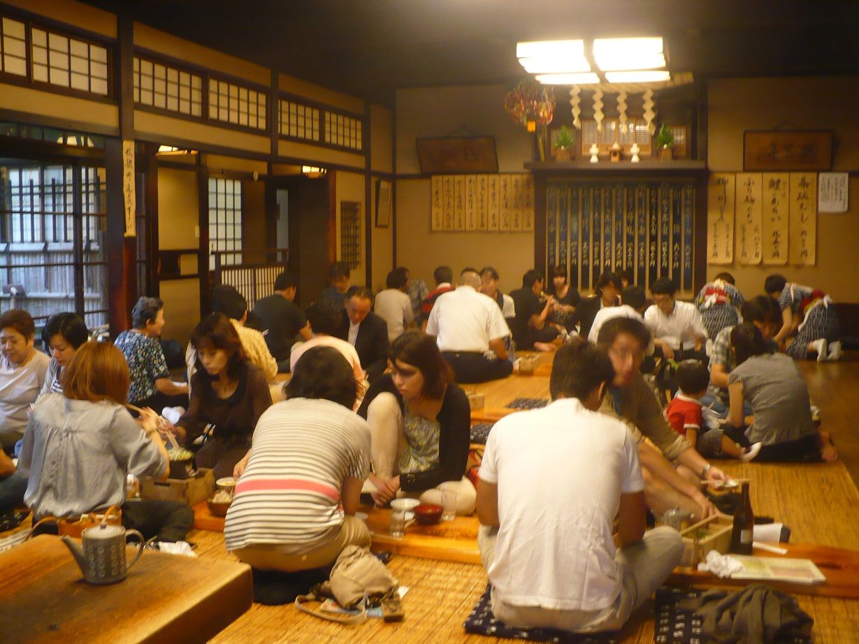 店内はこんな感じの広い座敷で雰囲気があって良いです。でも私たちは5人で行ったので、2階のテーブル席に案内されました。ちょっと立て膝でお行儀の悪いお姉ちゃんが気になりますねぇ〜 相方は正座してんのに・・・(^∀^)