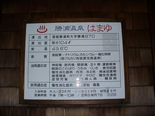 日が暮れて那智勝浦に戻り、今日2度目の温泉・勝浦温泉はまゆに行った。ココは温泉だが公衆浴場で人が5〜6人入れるくらいの浴槽があるだけで、狭いですが田舎の風呂屋って感じで雰囲気があり結構リラックスできますが、湯がもの凄く熱いので3分も浸かれないですけどねw