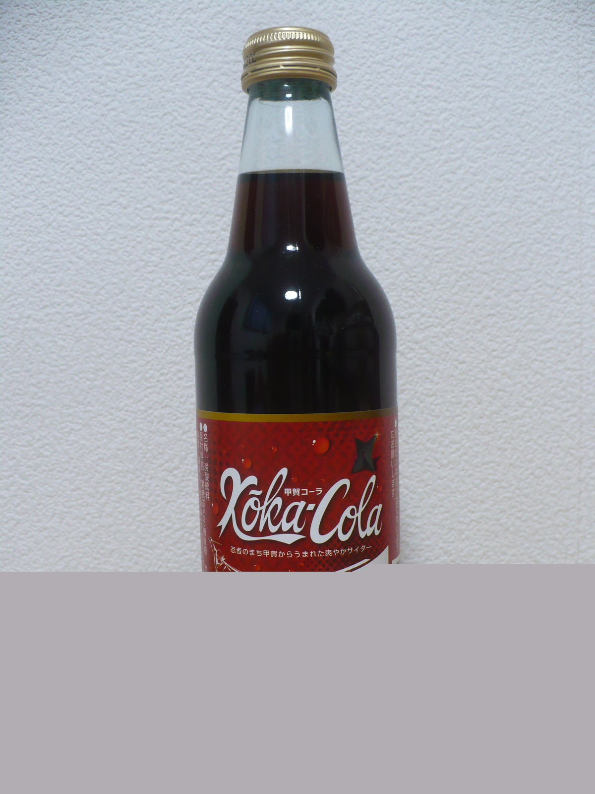今日は滋賀県に行った時に米原市内にある物産館で216円で購入した、甲賀市にある酒造会社・滋賀酒造が販売するコーラ「甲賀コーラ」を飲みました。コカ・コーラにかけて甲賀(こうか)コーラと言うネーミングは、なかなか面白いですね。飲んだ感想はやや炭酸が弱めで結構甘ったるい感じですが、意外にコカ・コーラに似た様な味わいがしてました。1本216円は少し高いですが、うけ狙いでお土産に買うのには良いかもしれませんね。