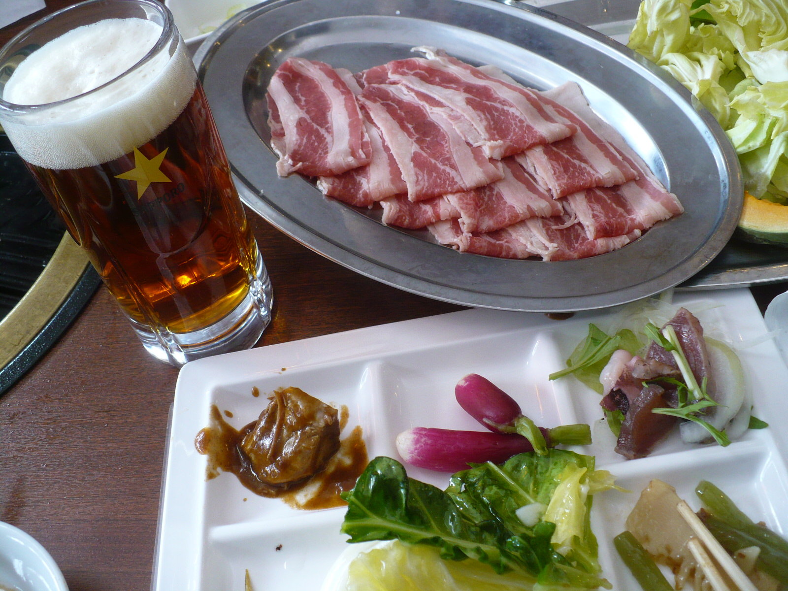 今日は野菜料理を少し食べて、牛焼しゃぶを食べまくりました!(^∀^)脂は結構強いですが、柔らかくてメチャ美味しくビールがメチャ進みます!プレミアムビールのピルスナー2杯とドゥンケル・ヴァイツェンそして琥珀エビスを1杯づつ飲み、ビールと牛焼しゃぶを堪能しました。あぁ また太ってしまうなぁ・・・