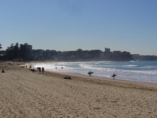 マンリーのメインストリートです。大勢の人で賑わい飲食店など店屋がたくさんあります。真冬で寒いですが、何となく「南国のビーチ」って感じがして暖かく感じますw