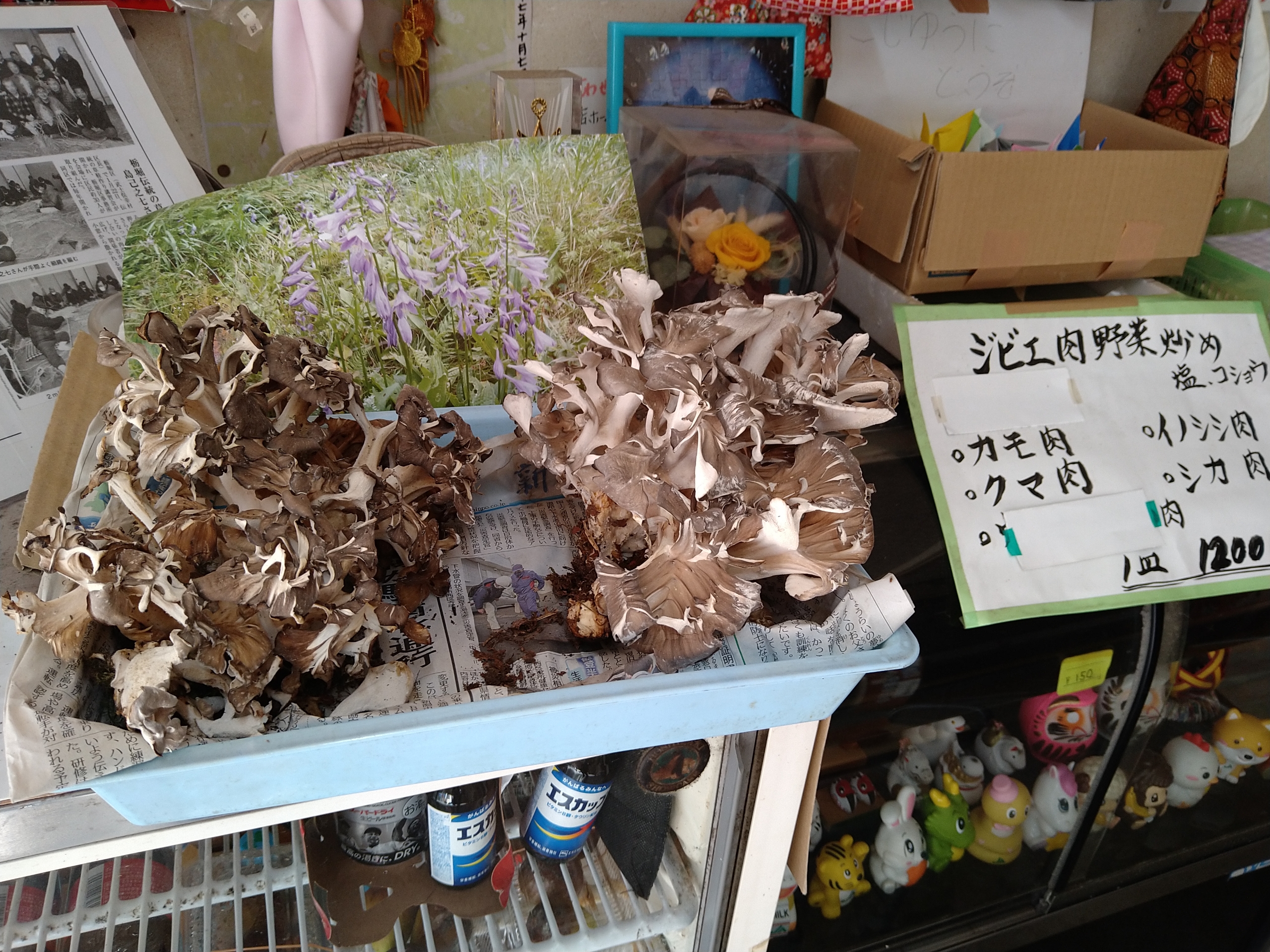 店に入ると天然の舞茸が置いてあり、今のお勧めを店の人に聞いたら舞茸だったので舞茸を食べる事にしました。