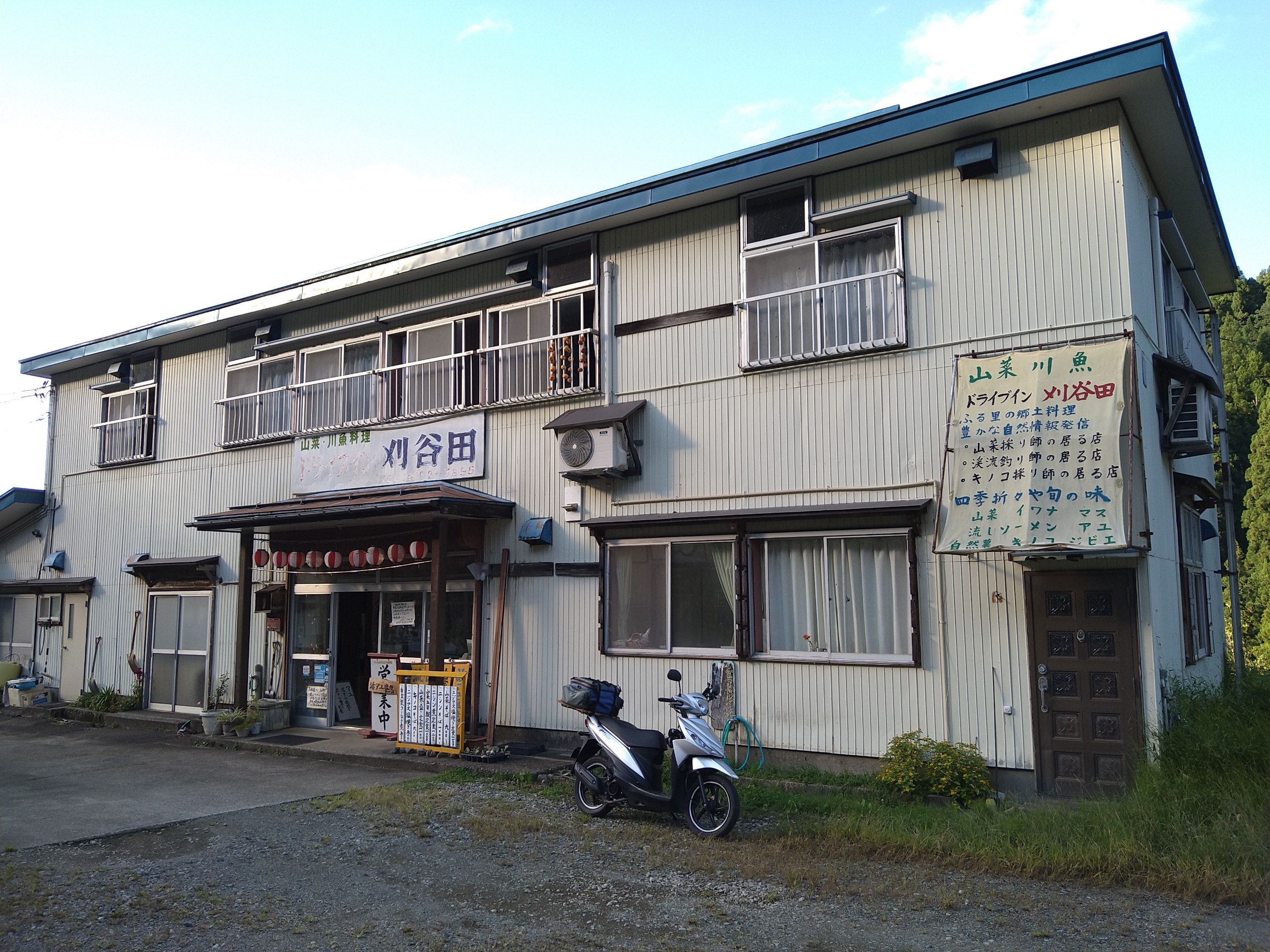 ドライブイン刈谷田は春は山菜料理・夏は鮎やニジマス等の川魚料理・秋はきのこや自然薯料理・冬は鹿・鴨・猪等のジビエ料理と四季折々の自然の恵みを生かした料理が味わえるお店です。