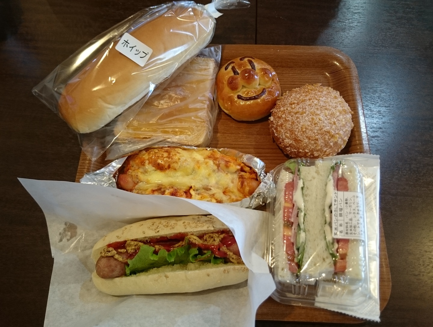 今日はお持ち帰らずに店内でイートイン!熱々のホットドッグめちゃ美味しい〜(^∀^) それと玄米ブレッドのサンドイッチが野菜がたくさん入って210円の安さ美味しいかったです。安くて美味しいのでたくさん買いましたが、これだけの量はさすがに食べきれずクリームパンとメープルトーストは持ち帰りました。^^