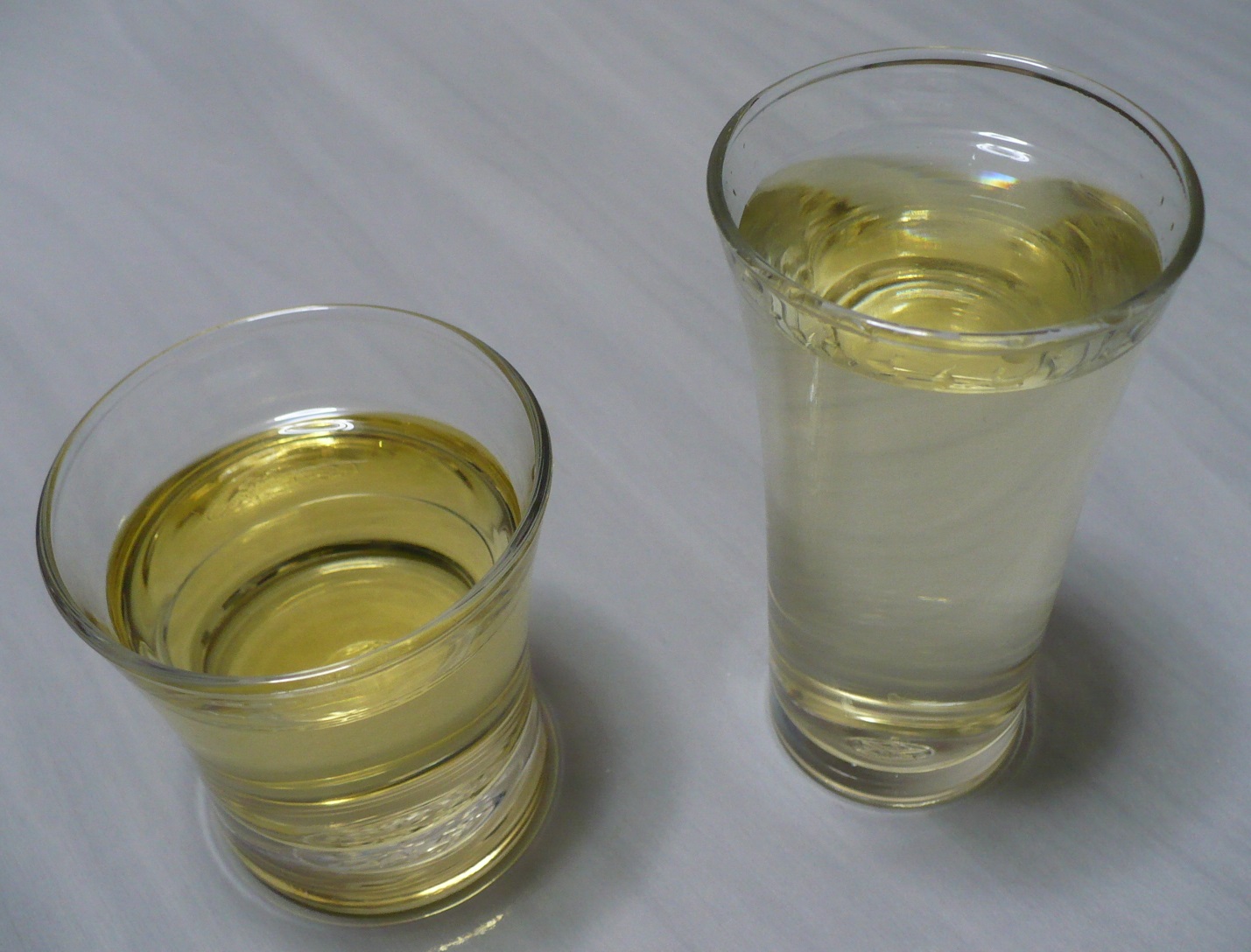 ストレートはきついので、冷やした25度の米焼酎と割って江戸時代からある味醂のカクテル柳陰にして飲みました。画像は左が味醂で右が柳陰です。焼酎で割る分、色が薄くなり飲むと味醂をストレートで飲んだ時より淡麗であっさりとして後味スッキリで飲みやすいです。25度の米焼酎で割ったので味醂単体よりアルコール度数が上がり後味にアルコール辛さもありますが、味醂ストレートで飲むより柳陰の方が飲みやすさ味ともに良く美味しかったです。 柳陰は上方の呼び名で昔、江戸では本直しと呼ばれていたそうです。
