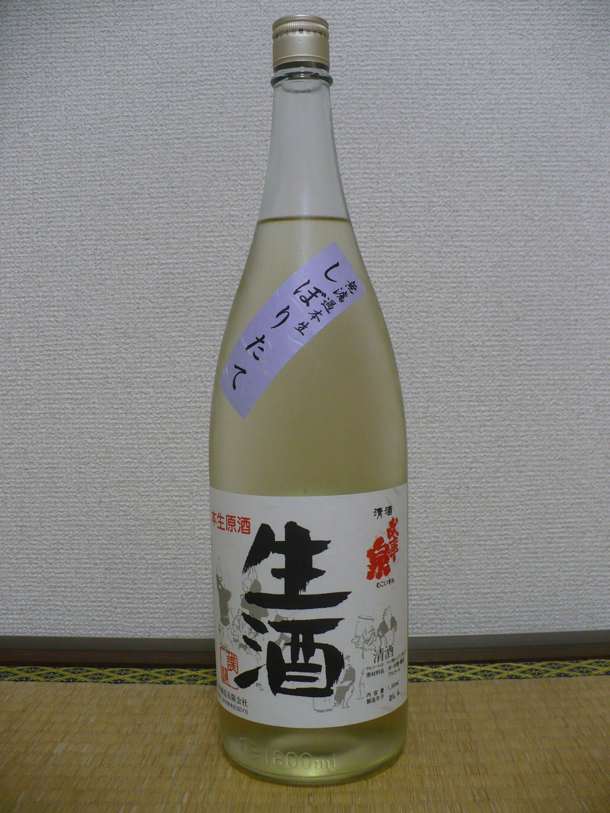 「今日の晩酌!VOL.1042」今日は盆休みに帰省した時に、三田市にある酒蔵・安井酒造で1700円で直売してもらった酒「武庫泉」を飲みました。安井酒造は現在自醸はしておりませんが、ラベルの社名の後に記号も無い事から壜詰はラベルの住所地である安井酒造で壜詰を行っていると思われます。ラベルには上撰や特撰と言ったランクを示す表示はされてなくて、原材料名を見る限りでは糖類無添加の普通酒の様です。飲んだ感想はやや淡麗の甘口の酒でスッキリとしていますが、若干 カビ臭を感じます。後味は少しアルコール辛さがありますが、旨みもしっかりとある酒で美味しかったです。