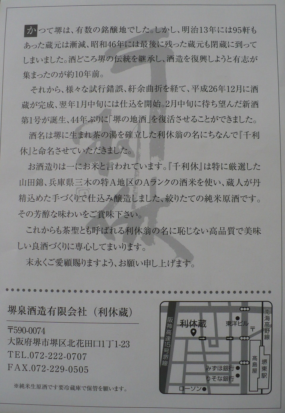 44年ぶり復活!堺の地酒・千利休を飲む!
