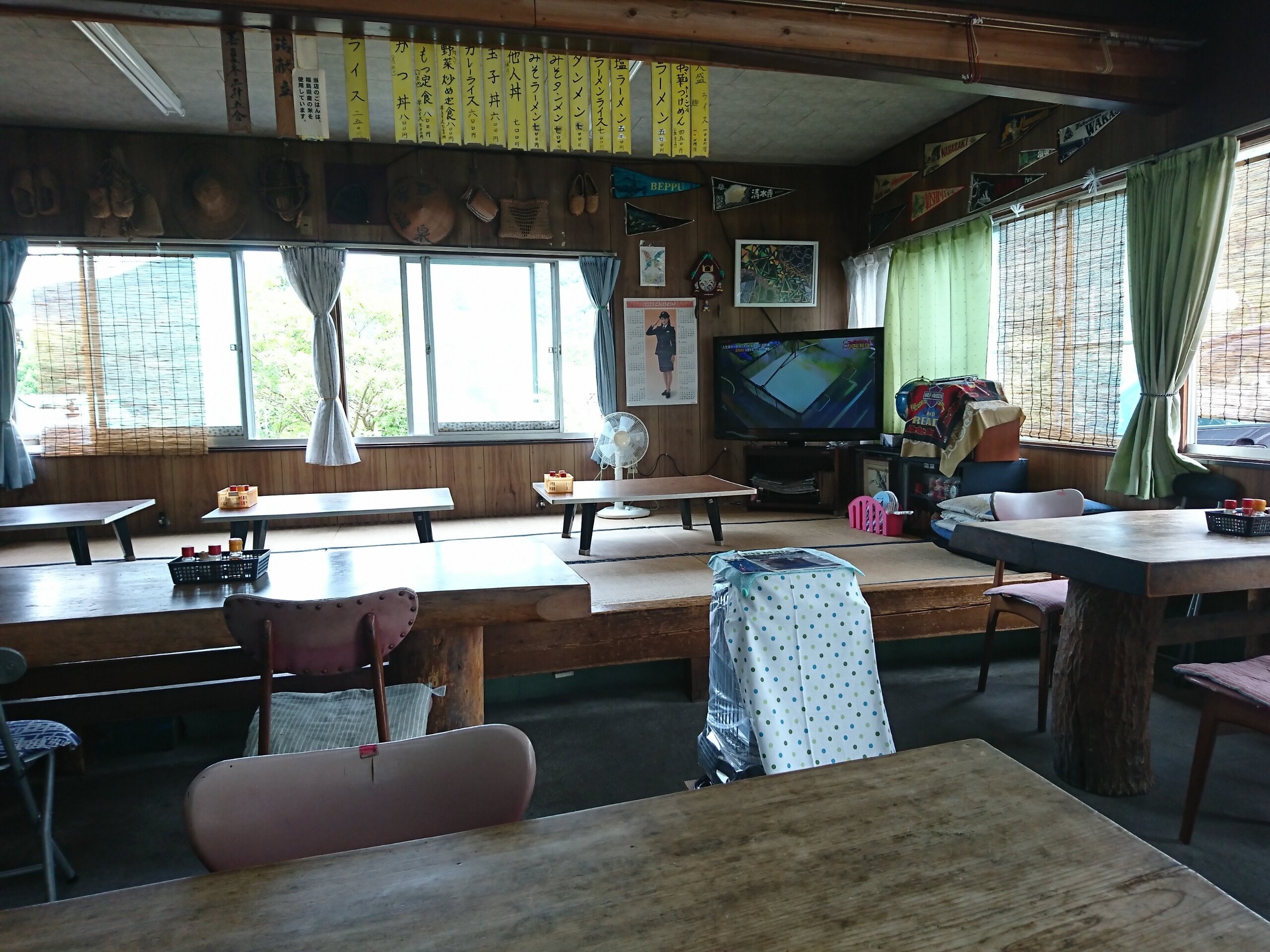 店内は4人掛けのテーブル席が5席と座敷にちゃぶ台が3つありました。