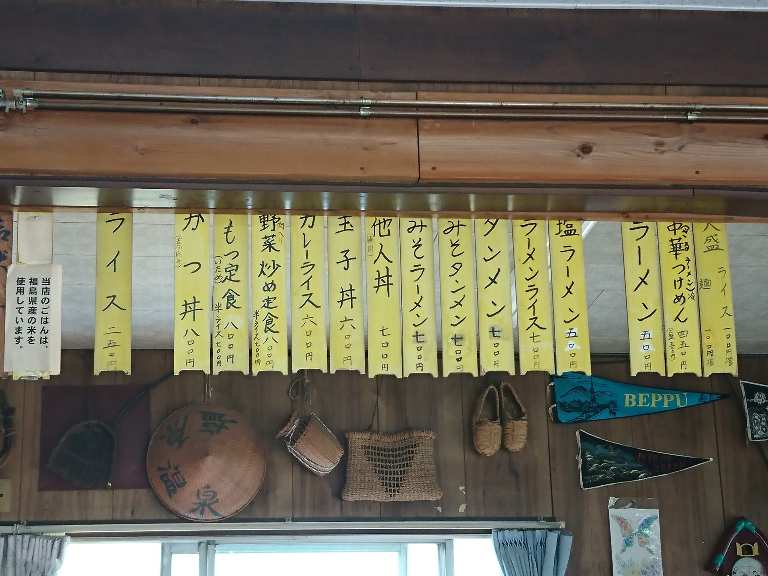 お店のメニューです。メニューは少なめでラーメンに蕎麦・カレー・カツ丼・焼肉定食、ちょっと気になる朝めし定食・そして会津名物のソースカツ丼があります。店には11時半に行きましたがお客はおらず私一人だけでした。