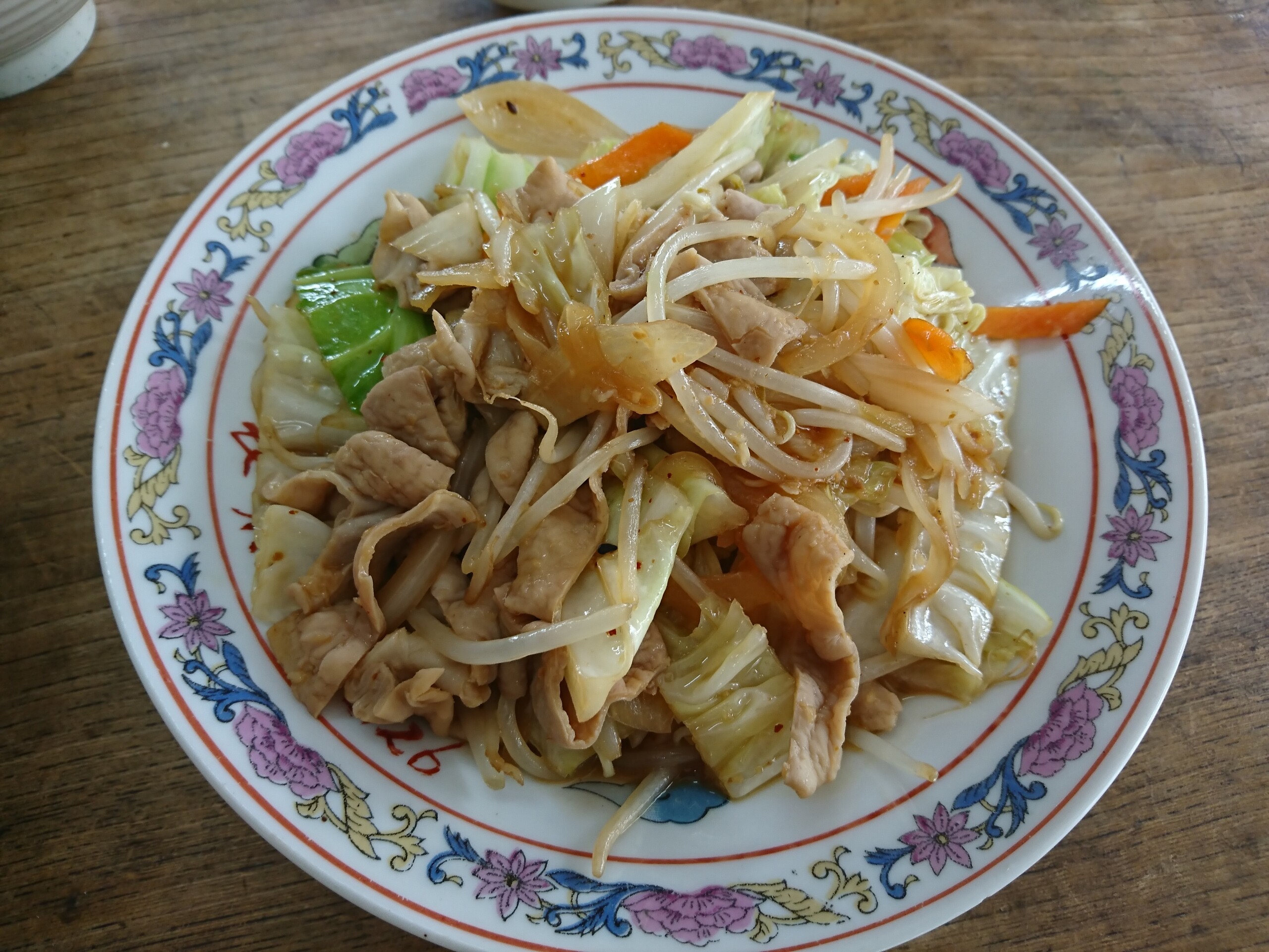 ボリュームはもつ炒め・ご飯ともに普通です。もつ炒めは野菜の火の通りが甘くキャベツの芯の部分はガリガリとしてましたが、濃いめのご飯の進む味噌味で美味しかったです。